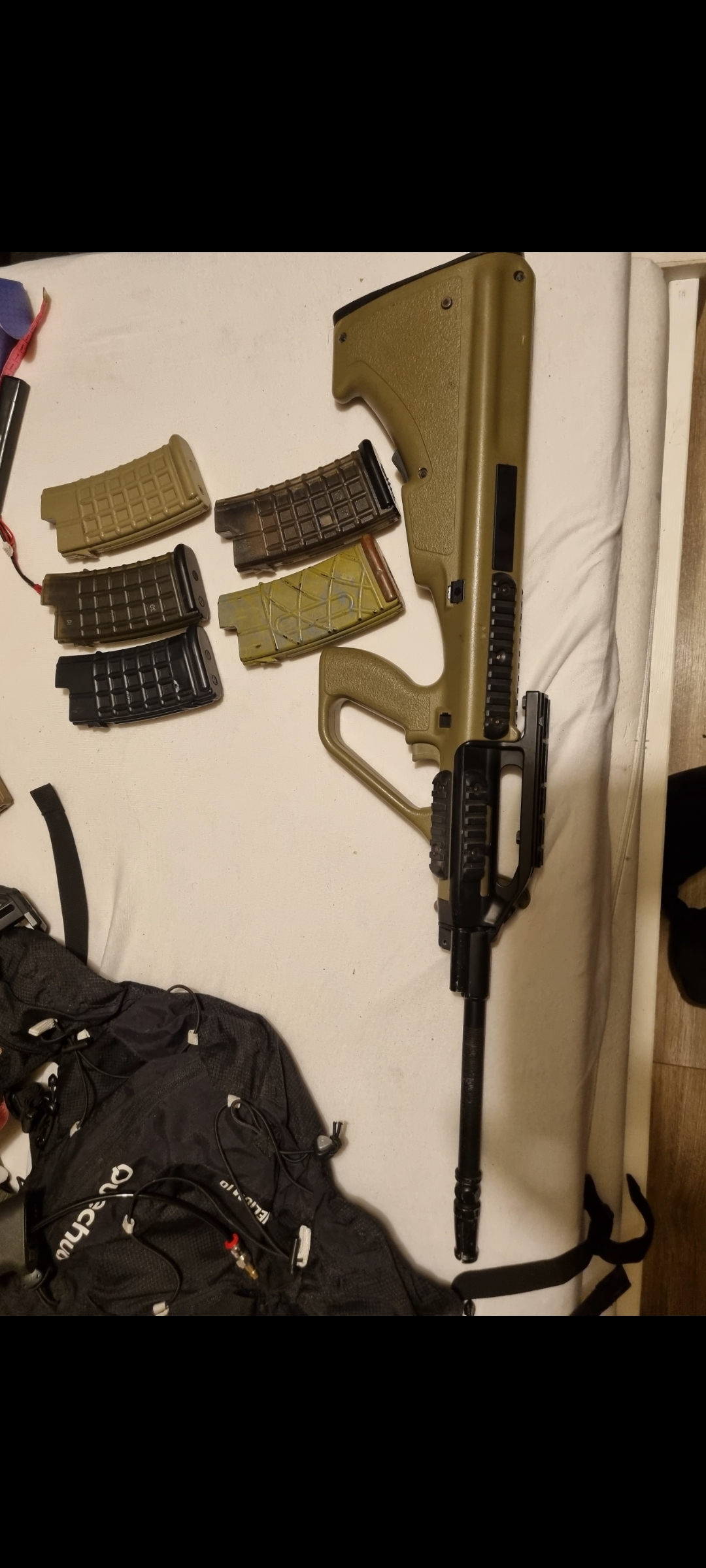 Witam. Do sprzedania AUG A2 Army Armament + 2 hi-capy i 3 low-cap Replika jest w pelni sprawna, generuje ~400fps. W srodku sporo rzeczy zmienione, tj: -Wzmocnione zebatki cnc -Przewody niskooporowe -Silnik high torque Specna Arms -Tlok stalowe zęby -Cylinder typ 0 -Sprezyna guarder Sp120 -Mosfet perun -Komora hopup CNC AirsoftPro -Gumka rozowy macaron -Selektor Semi/auto z druku 3d Dlugosc lufy wewnetrznej 530mm, Dlugosc lufy zewnetrznej 550mm. Gorna szyna ris zostala przycięta. Jedyny mankament to brak blaszki od wyrzutu lusek pracujacej wraz z dzwignia przeladowania (dostep do hopka zaslepiony gumą z obydwu stron) Uwazam, ze cena jest naprawde atrakcyjna, rozważę rowniez lekka negocjacje poniewaz mam 3 repliki a pilnie potrzebuje gotówki. Preferowany kontakt sms/whatsupp pod nr 514704786