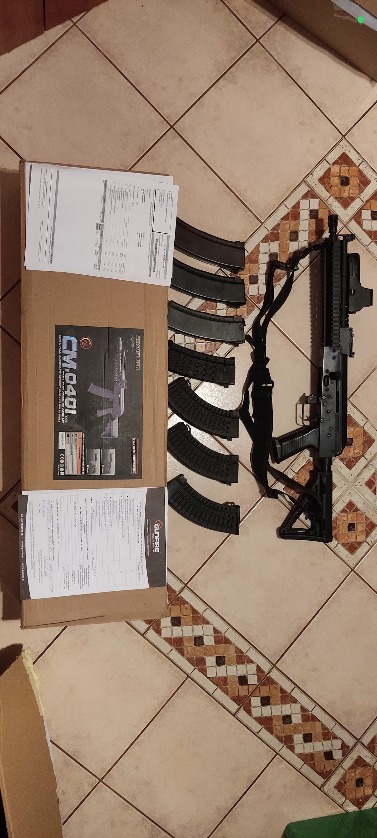 Sprzedam replikę marki CYMA Model 040l. Replika kupiona kilka lat do tyłu, niewielki przebieg, przez lata niestrzelana. Brak baterii, konieczne sprawdzenie działania podczas potencjalnego zakupu.