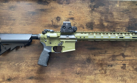 AEG Daniel Defense MK18 SA-E19 Edge - Chaos Bronze Replika oryginalna, nie rozkręcana, wystrzeliła z 2000 kulek, aktualnie leży i się kurzy. Sprzedaje cały zestaw widoczny na zdjęciach, czyli: -Replika wraz z uchwytem pionowym -Kolimator ( 551 R/G Advanced Dot Sight ) -Osłona na kolimator - 4 magazynki (mid-cap) o poj. 125 kulek -Pas bungee jednopunkowy -Akumulator firmy Specna Arms 7,4V o poj. 2000mAh -Torba LiPo GUARD -Ładowarka electro river flux charger - Całe opakowanie kulek bio 0,25g + dwa otwarte 0,28g oraz 0,2g\ -Walizka na karabin o wymiarach 950x230x110mm