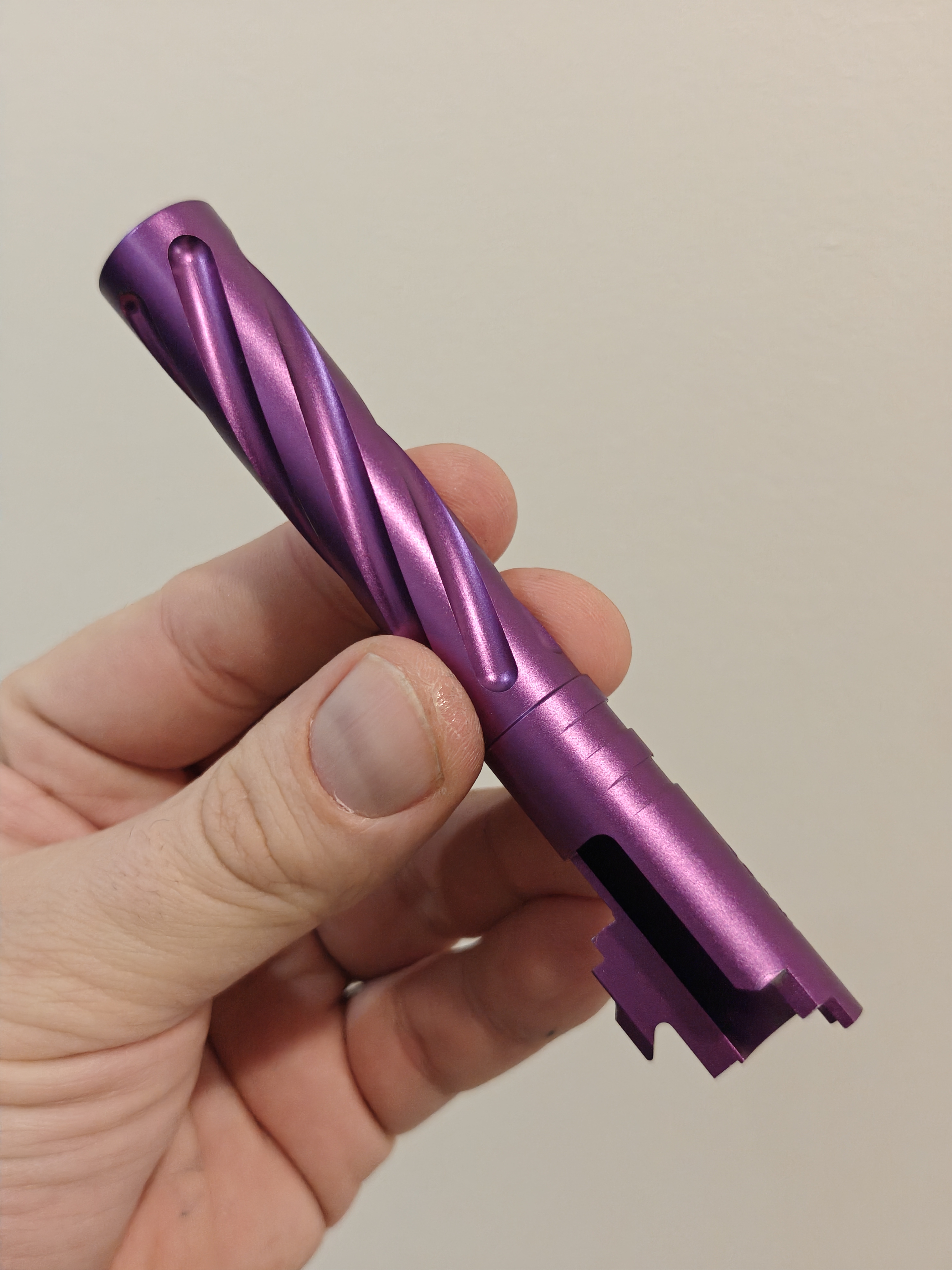 LLC Tornado Outer Barrel 5.1 Custom Color: Purple Material: CNC 6061 Aluminum Weight: 36g Compatibility: Tokyo Marui 5.1 Hi-Capa series Airsoft GBB pistols Manufacturer: LA CAPA Customs Posiada gwint wewnętrzny. Prawie nowa, kupiłem ją razem z HiCapą, ale nie pasuje mi kolor. Minimalne ślady jak na foto. Komora oczywiście nie jest w zestawie, tylko sama lufa. Na GFC takie lufy kosztowały w cenie regularnej. Odbiór osobisty w Łodzi albo inpost 17zl.