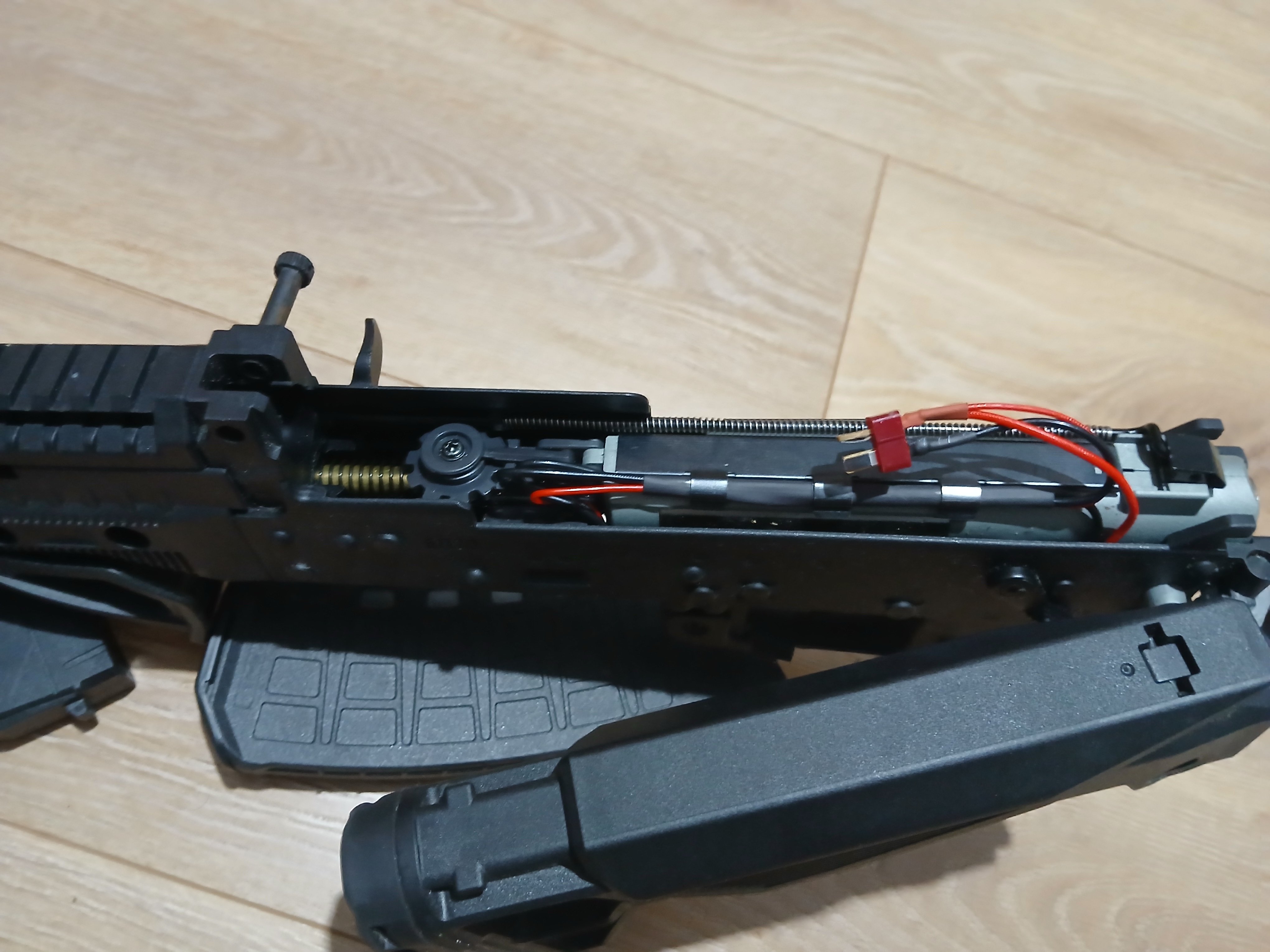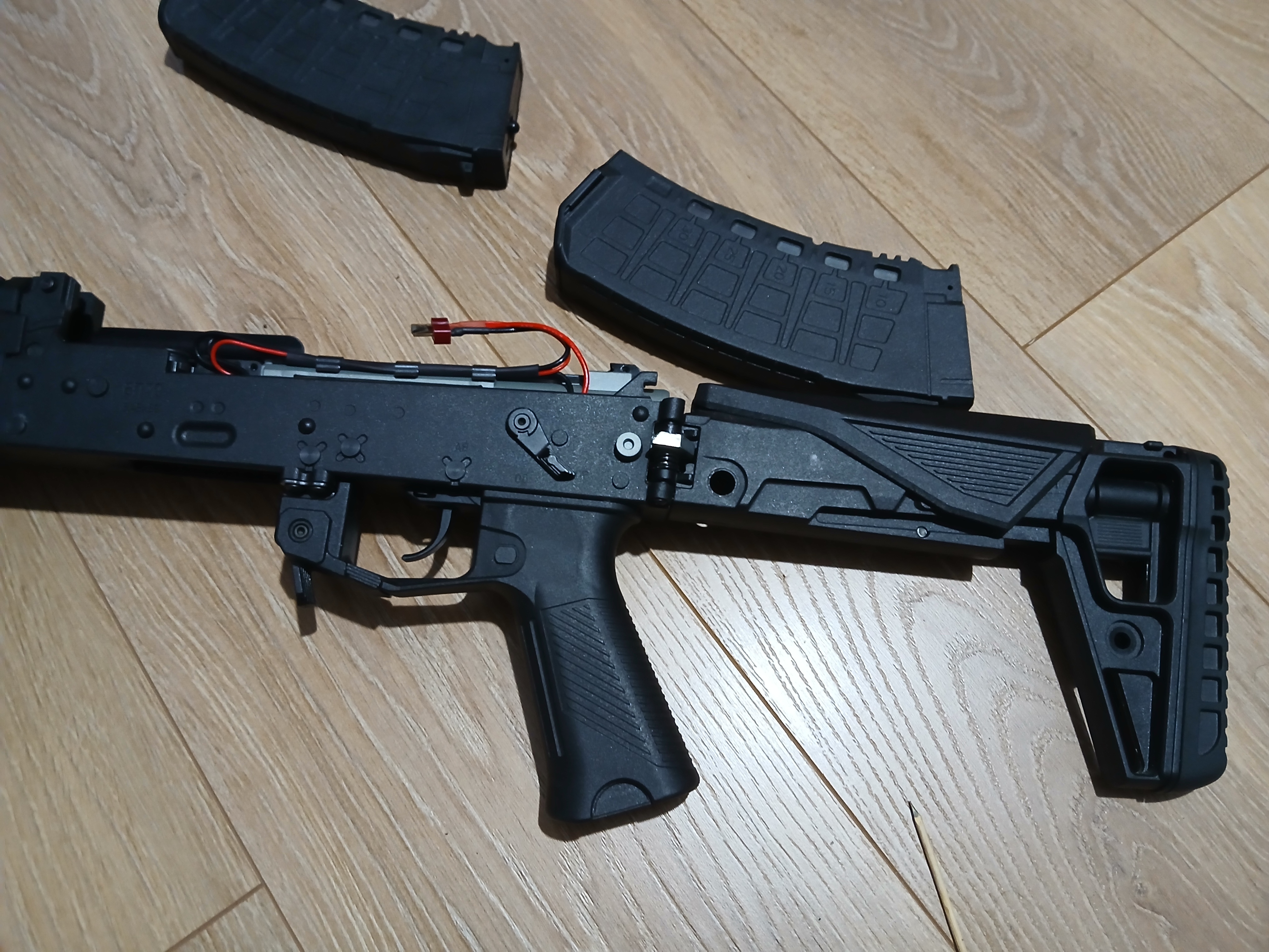 WE09 replika karabinu szturmowego [WELL PRO] + dwa magazynki Wymieniona sprężyna na shs 120 i gumka na niebieską shs Używana sporadycznie na nocnych strzelankach Uszkodzony mechanizm składania kolby, ale po rozłożeniu mechanizm prawidłowo blokuje i kolba jest w pełni funkcjonalna