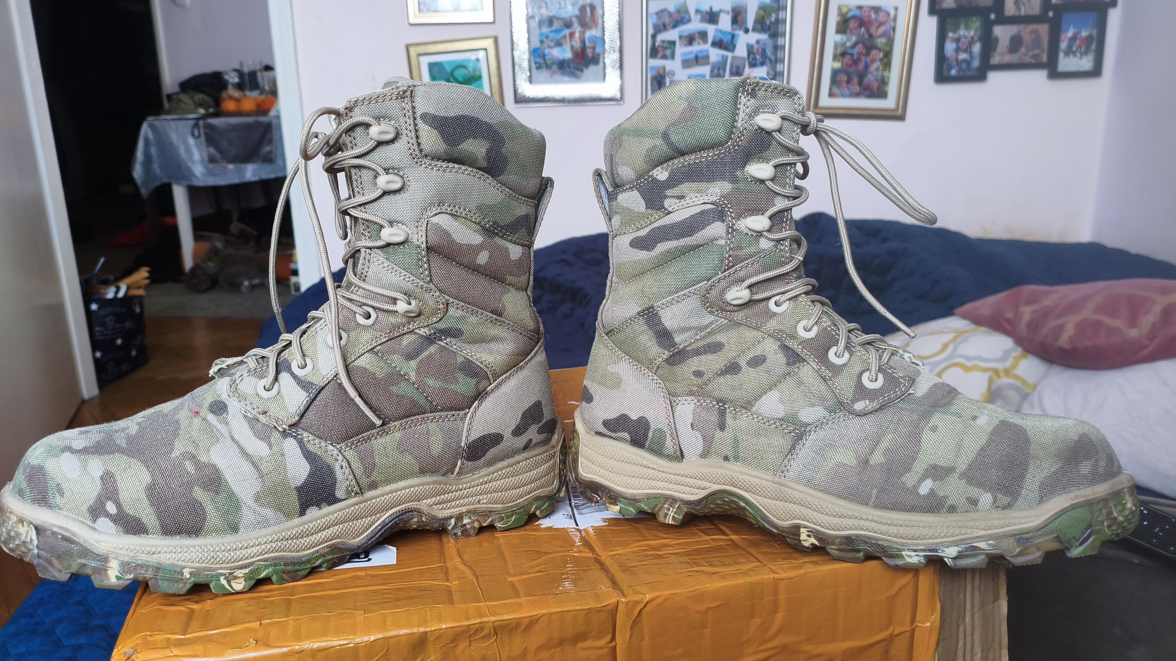 Używane stan jak na foto. Kupione jako nowe na jednym z portali sprzedażowych, użyte na 3 strzelankach, nie trafiłem z rozmiarem, są na mnie jednak trochę za duże noszę 44,5.