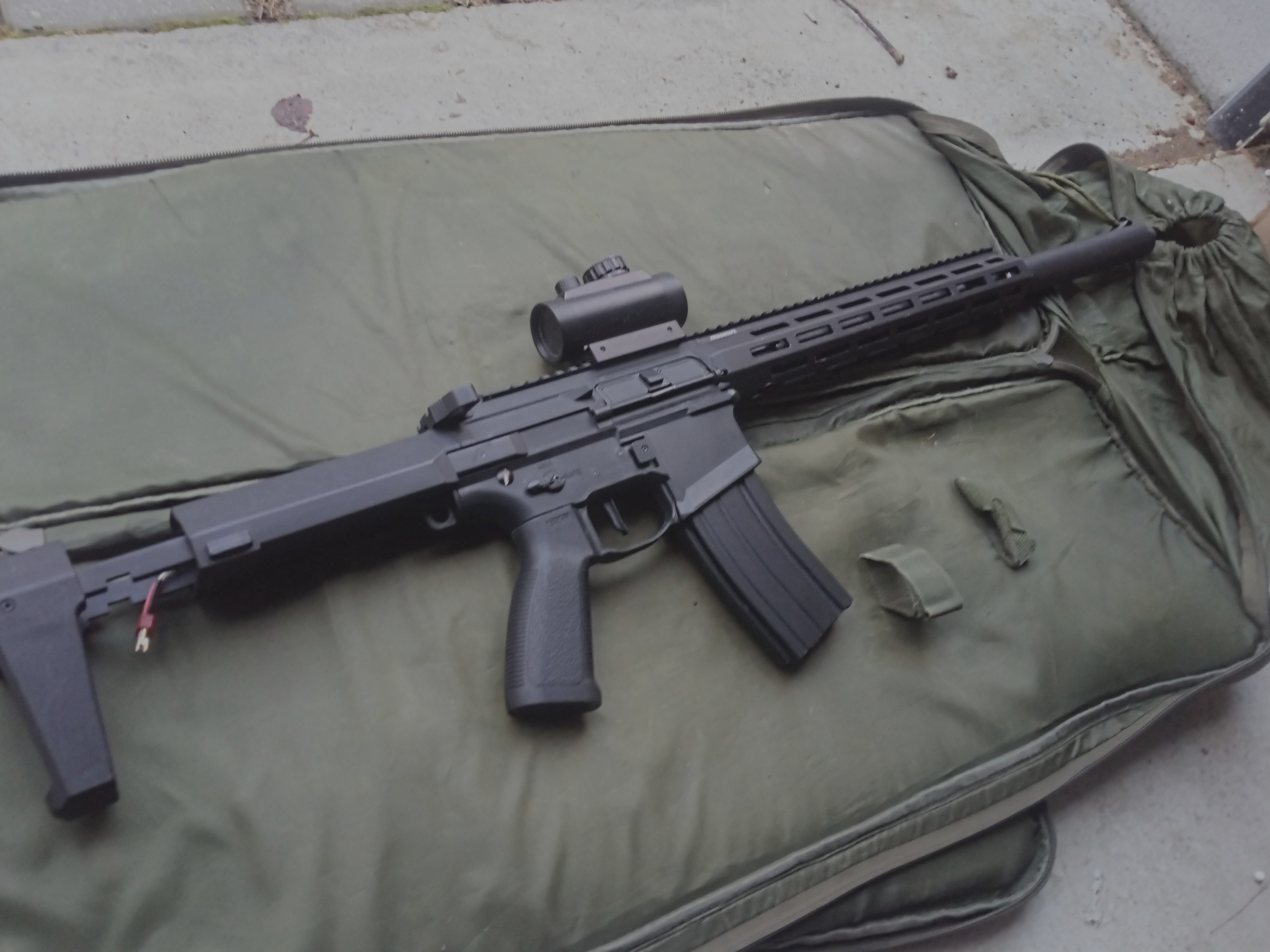 Karabinek od DE, ciekawaw hybryda gdyż body tworzywo wytrzymałe ale front metalowy. Replika była na serwisie na którym był zrobiony duży tuning pod limit szturmu. Od tamtego czasu pięknie nosi kulki 0,30g. Wzmocnione części w GB oraz wymieniona komora hop-hp ( chyba G&G ), FLAT-HOP, lufa precyzyjna. Z misusów to wyrobiony gwint ale tłumik trzyma, po prostu nie odkręcać go i będzie dobrze. Replika na strzelanach robiła robotę znakomitą i bardzo przyjemna jest w rękach. W ZESTAWIE : - REPLIKA - MAGAZYNEK ( mogę dodać jeszcze jakieś ) - KOLIMATOR KONTAKT 24h : 781-106-076 Zapraszam na pozostałe moje ogłoszenia. Daję gwarancję
