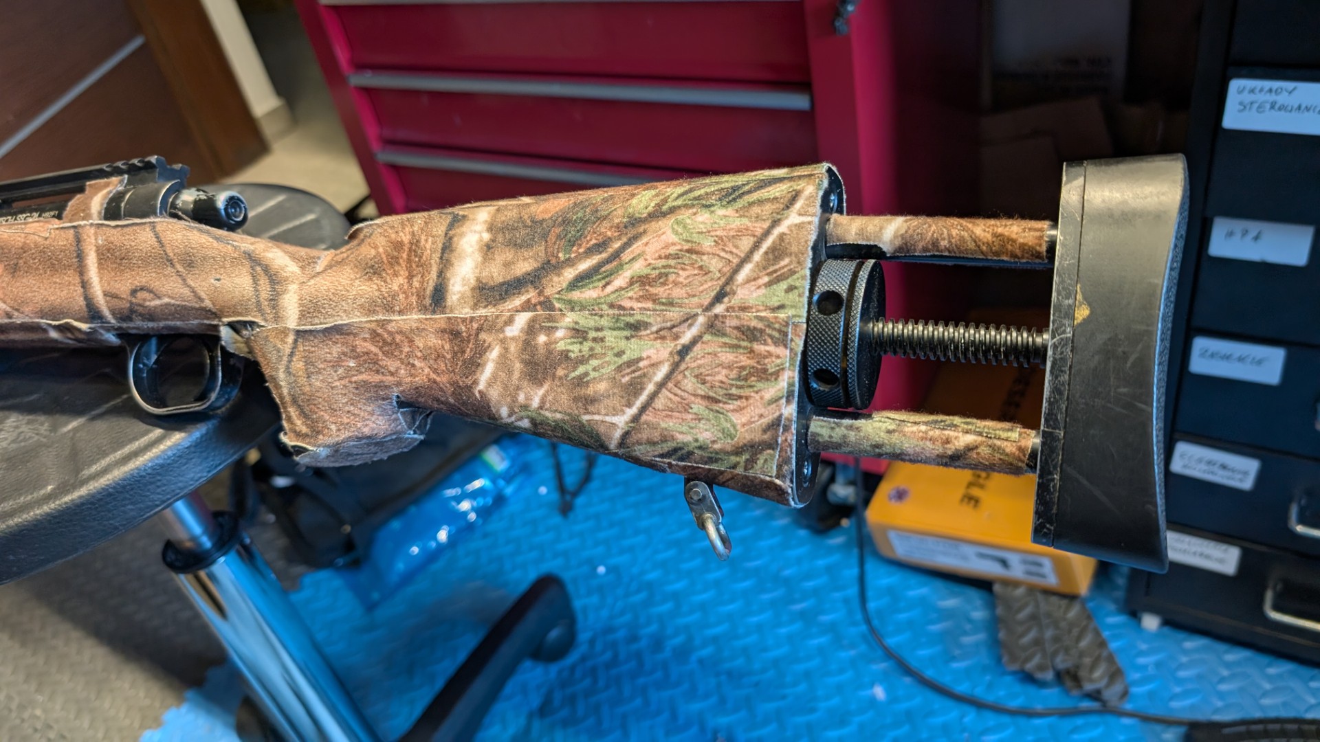 Klasyczne SS24 od Austriaka, obklejona całość świetnej jakości taśmami maskującymi, buda wypełniona piankami, aby ograniczyć rezonans. Moc grała w tej replice drugorzędne znaczenie, chodziło o skrytość i cichy strzał. Technicznie: - Sprawdzone, wyczyszczone i przesmarowane, - Demostkowana lufa + nowa gumka Predator Modify - Poza gumką stock (włącznie ze sprężyną) - Nakładka na lufę pozwala na montaż tłumika. - 2.5J @ 0.45g