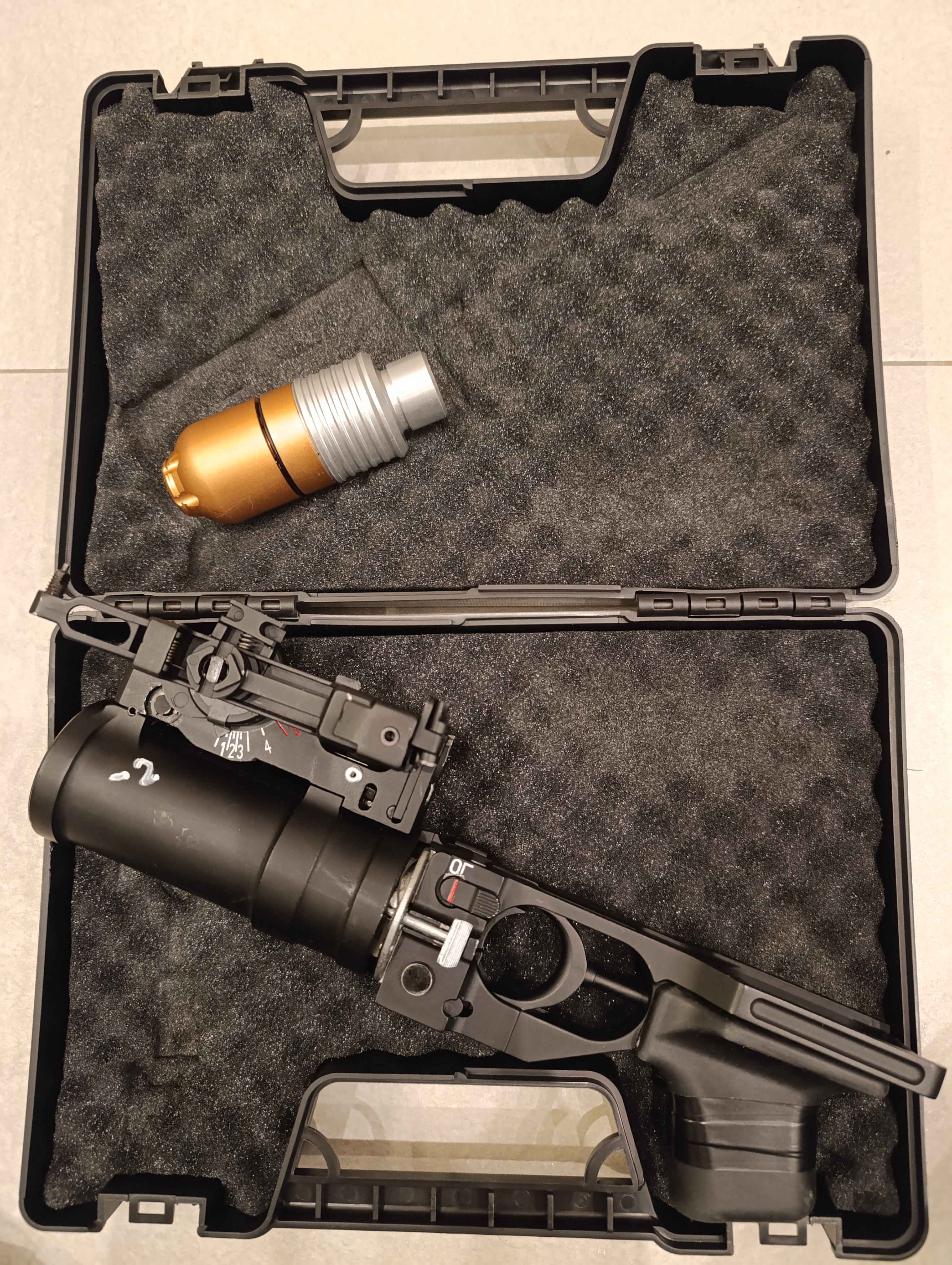 Na sprzedaż prawie nowy granatnik GP25 od Double Bell Kupiony na początku lutego, założony na replikę, był na jednej strzelance a tak to używany w domu do zabawy Granatnik ma zmodyfikowany zaczep tak by wchodził na AK74M VFC GBBR. Nie gwarantuje że będzie siedział równie dobrze na innych replikach. Jak to w ASG- czasem trzeba gdzieś przyszlifować, czasem podkleić izolką. W końcu replika ruskiego sprzętu :D Granatnik w 100% sprawny i kompletny, granat szczelny i działający. Leciutkie ślady używania od tego małego przebiegu. Strzeliłem z niego gazem max. 5 razy. Nic nie zgubione, nie połamane itd. Zrobiłem małego moda jakim jest wklejenie gumowego chwytu pistoletowego granatnika na klej, już się nie wysunie ;) W zestawie wszystko co daje producent, w tym walizka Taśma z chwytu tylko dla efektu wizualnego, można ją zdjąć Ciężki, cały metalowy, zamienia twojego kałacha w workout przedramion :D
