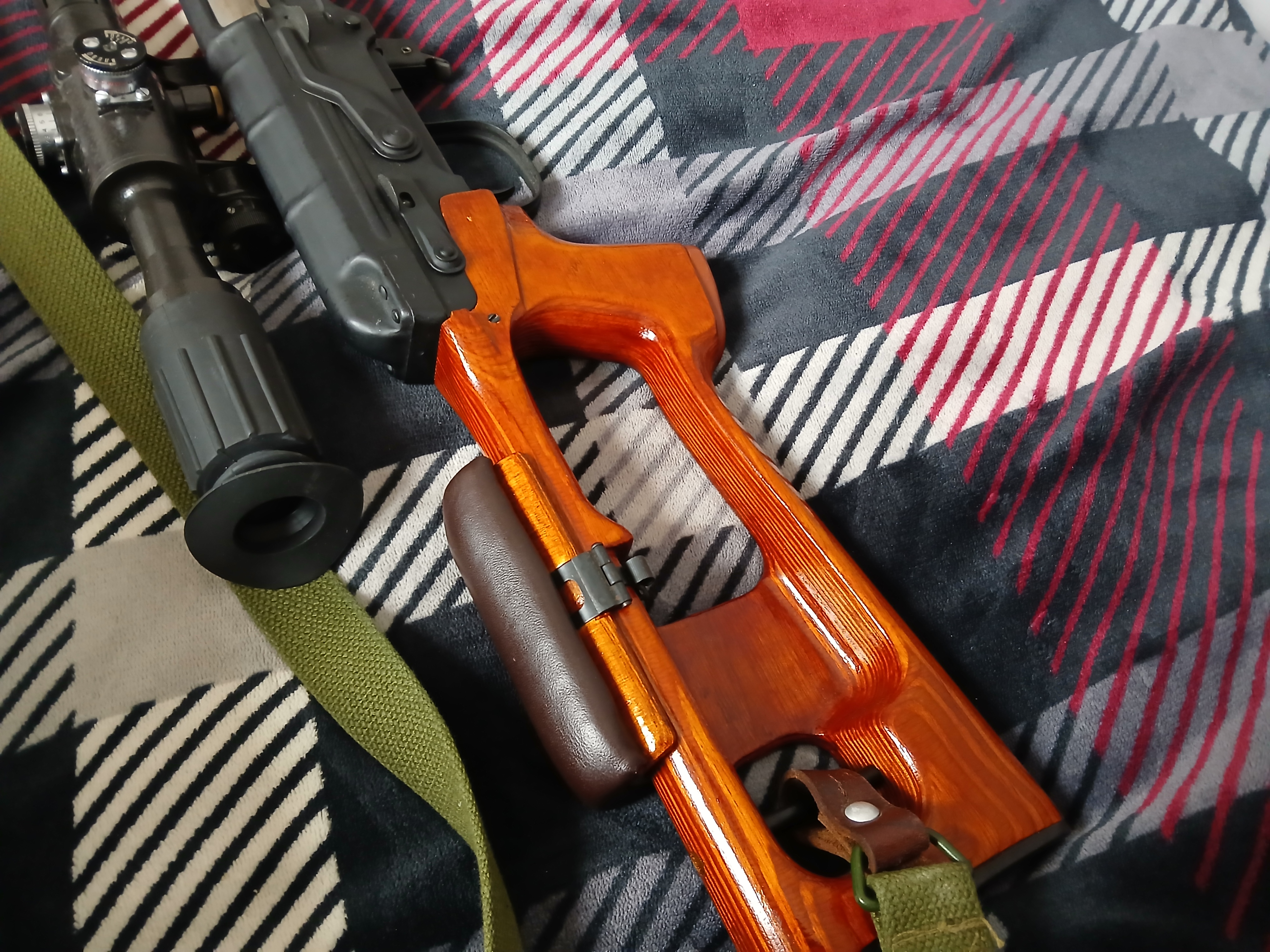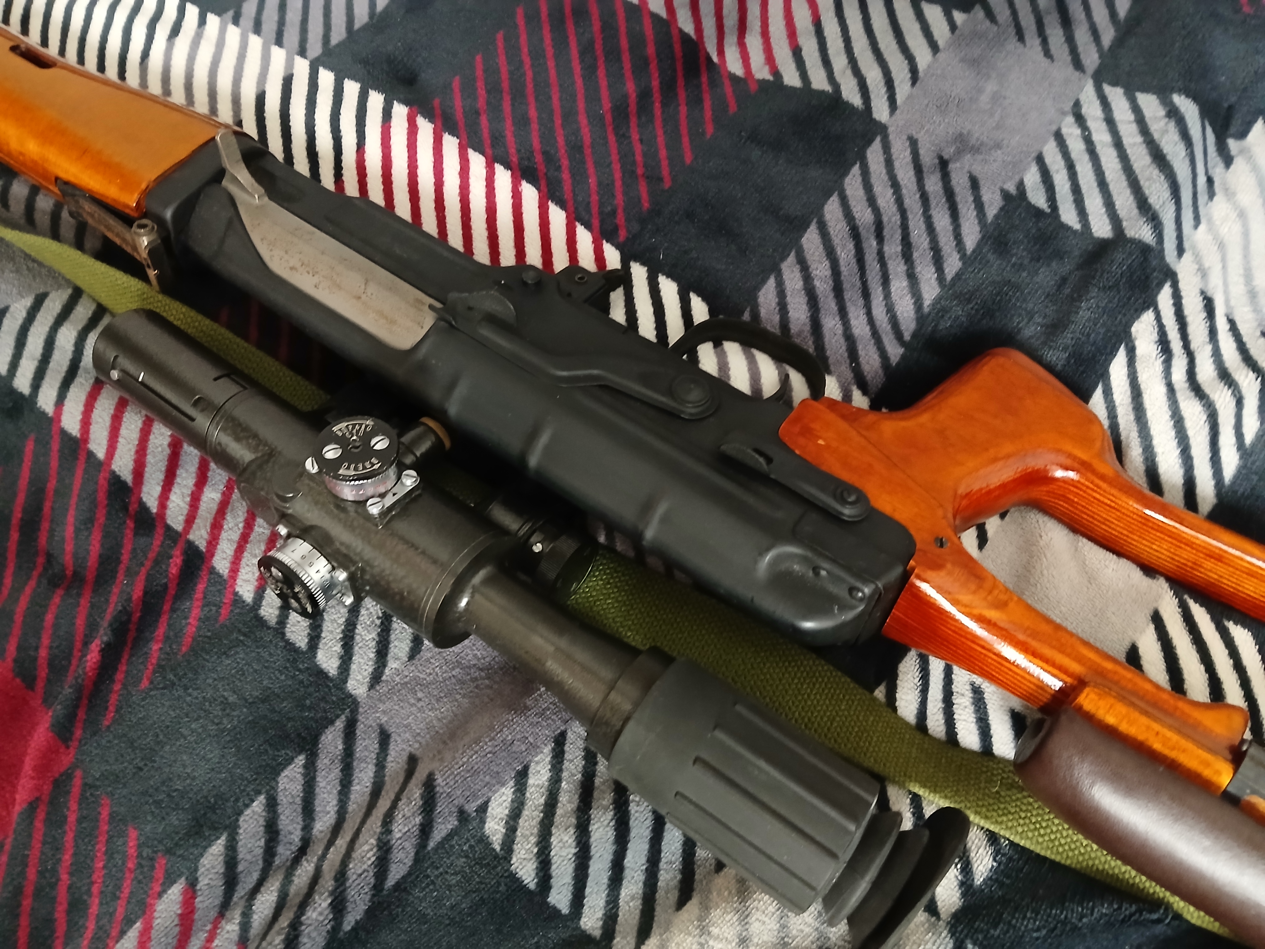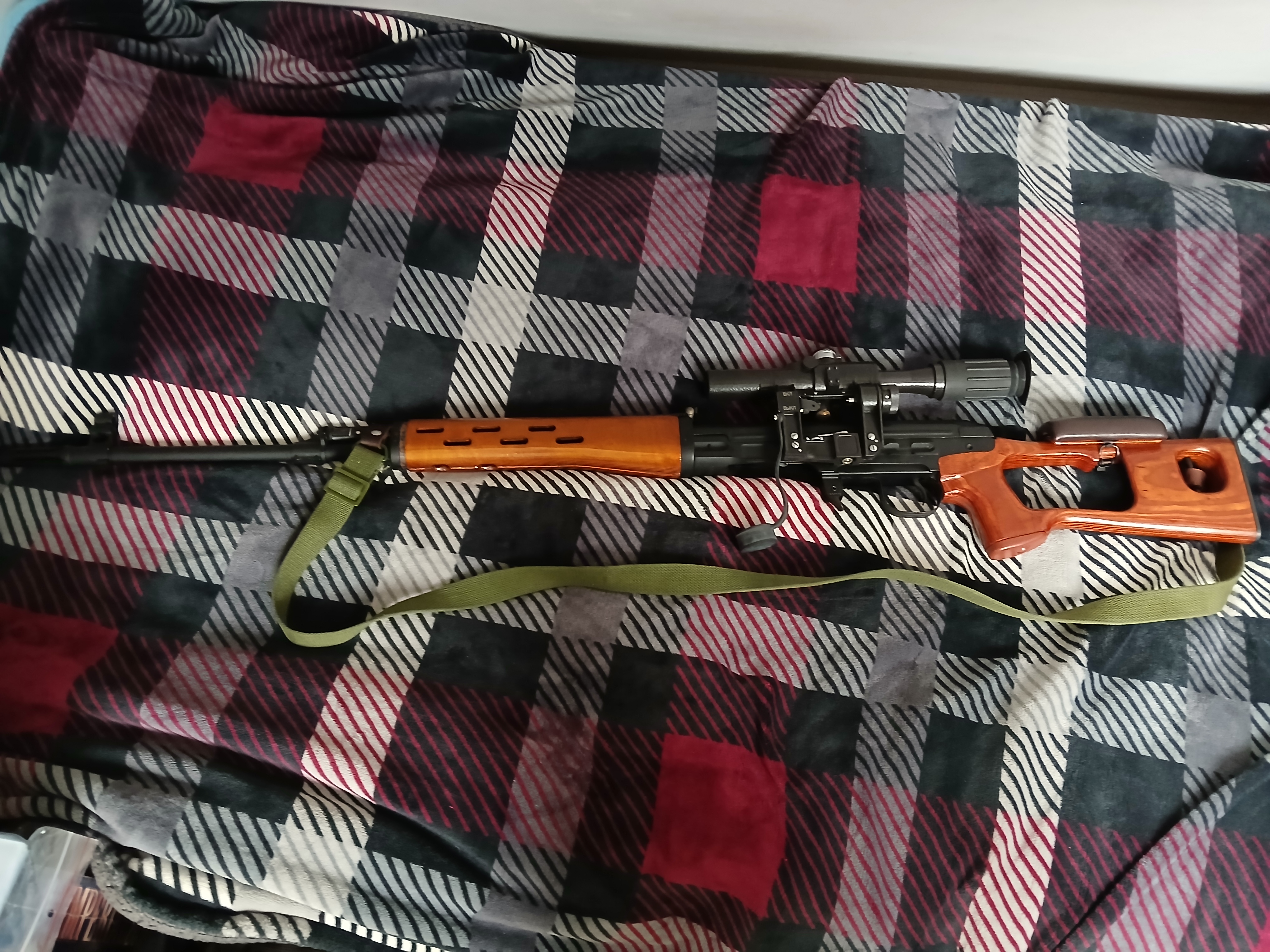 Na sprzedaż trafia Dragunow SVD od Real Sword. Jestem jego pierwszym i jedynym właścicielem. Jest to egzemplarz zakupiony ponad 10 lat tmu(serio to słowo z brakującym "e" jest cenzurowane?!). Przebieg: Symboliczny, ok. 200–300 kulek. Replika większość czasu spędziła w pudełku. Widziała jedną strzelankę jako "punkt ogniowy" z dachu budynku i kilka sesji strzeleckich do celów. Wykonanie: Lakierowane drewno i autentyczna oksydowana stal o specyfikacji wojskowej. Paradoksalnie nie jest to "chińska" kopia, tylko replika o masie i fakturze ostrego odpowiednika... produkcji chińskiej, ale każdy kto miał w łapie RS-a, wie że w wykonaniu zewnętrznym nie mają sobie równych, nie jest to żadna "airsoftowa" stal: GHK, E&L czy LCT to dalej nie ta sama liga jak chodzi o proces produkcyjny. Jest to nieco późniejsza seria RS-a co widać po numerze seryjnym, pozbawiona niektórych wad wcześniejszych modeli. Wizualnie: Brak otarć na okładzinach, optyka bez rysek. Na suwadle i nieoksydowanych elementach stalowych widoczna lekka, powierzchniowa patyna – do łatwego usunięcia lub zostawienia dla charakteru. Oksyda wciąż matowa, "niedotarta". W zestawie sprzedaję: -Optykę PSO-1M: Oryginalna od Real Sword, w zestawie z dwiema "świńskimi uszkami", zapasowymi żarówkami i fabrycznymi akcesoriami. Dołożona osłona z pleksi wewnątrz osłony przeciwsłonecznej do zabezpieczenia optyki na strzelankach. -4 Magazynki: wszystkie to oryginały RS na 96 kulek, żadnych zamienników, posiadam jeszcze 2 fabryczne pudełka po magazynkach. -Oryginalne certyfikaty, instrukcje, narzędzia. Wwszystko co było w dniu zakupu w pudełku poza pomarańczowym zakończeniem lufy, ale mogę próbować ich poszukać jak są dla kogoś ważne. -Dodatkowe części: Nowa sprężyna RS M170 (do ekstremalnych buildów), zapasowy Unlocked Switch RS, oryginalna lufa (wymieniona na preckę) i wyżej wspomniana osłonka na optykę z pleksi. Tuning i Wnętrze: -Lufa: Precyzyjna Prometheus 650mm PSG1+. -Elektronika: Zamontowany mosfet U-FET od Gunfet oraz wtyki T-Connect (poprawia responsywność, czyli jedyną wadę, 4-zębatkowego Gearboxa T3). -Hop-Up: Czarna gumka Systema + nowa komora. Ważne uwagi: Drewniany chwyt: Na zdjęciach blokada chwytu przedniego jest zdjęta ("zbita") dla łatwiejszego dostępu do zasilania, nie jest to żadne uszkodzenie. Gearbox T3: Unikatowa konstrukcja na 4 zębatkach. Pozwala na budowę bezkompromisowego DMR-a (nawet pod 650 FPS), co dla standardowych szkieletów V2/V3 jest zabójcze. Serwis: Z racji wieloletniego leżakowania, bezwzględnie zalecam serwis startowy (wymiana smarów, przegląd ogumienia/gumki HU) przed wyjściem w pole. Komora HU: W tym modelu komora bywa wrażliwa na uderzenia magazynkiem (znany mankament RS). W razie potrzeby wymiany Begadi produkuje obecnie świetne zamienniki CNC. Cena: Ostatnie dostępne sztuki w sklepie w konfiguracji z samą optyką kosztowały ~5 lat tmu ponad 2,100 euro i od lat są już wyprzedane. Nim zdecyduję się wystawić ofertę na rynek zagraniczny, chcę poszukac kupca lokalnie w Polsce, więc wysłucham poważne propozycje. Zdecyowanie preferowany odbiór osobisty. Można obejrzeć replikę na żywo, a nie radzę ryzykować gorszego dnia kuriera przy wysyłce repliki tych wymiarów i tej klasy, ale jeśli trzeba możliwa wysyłka kurierska, w miarę możliwości adekwatnie ubezpieczona. Jako tanią bazę do tuningu polecam repliki CYMY, ale dla zainteresowanych najlepszego SVD do airsoftu jakie powstało - zapraszam do kontaktu.