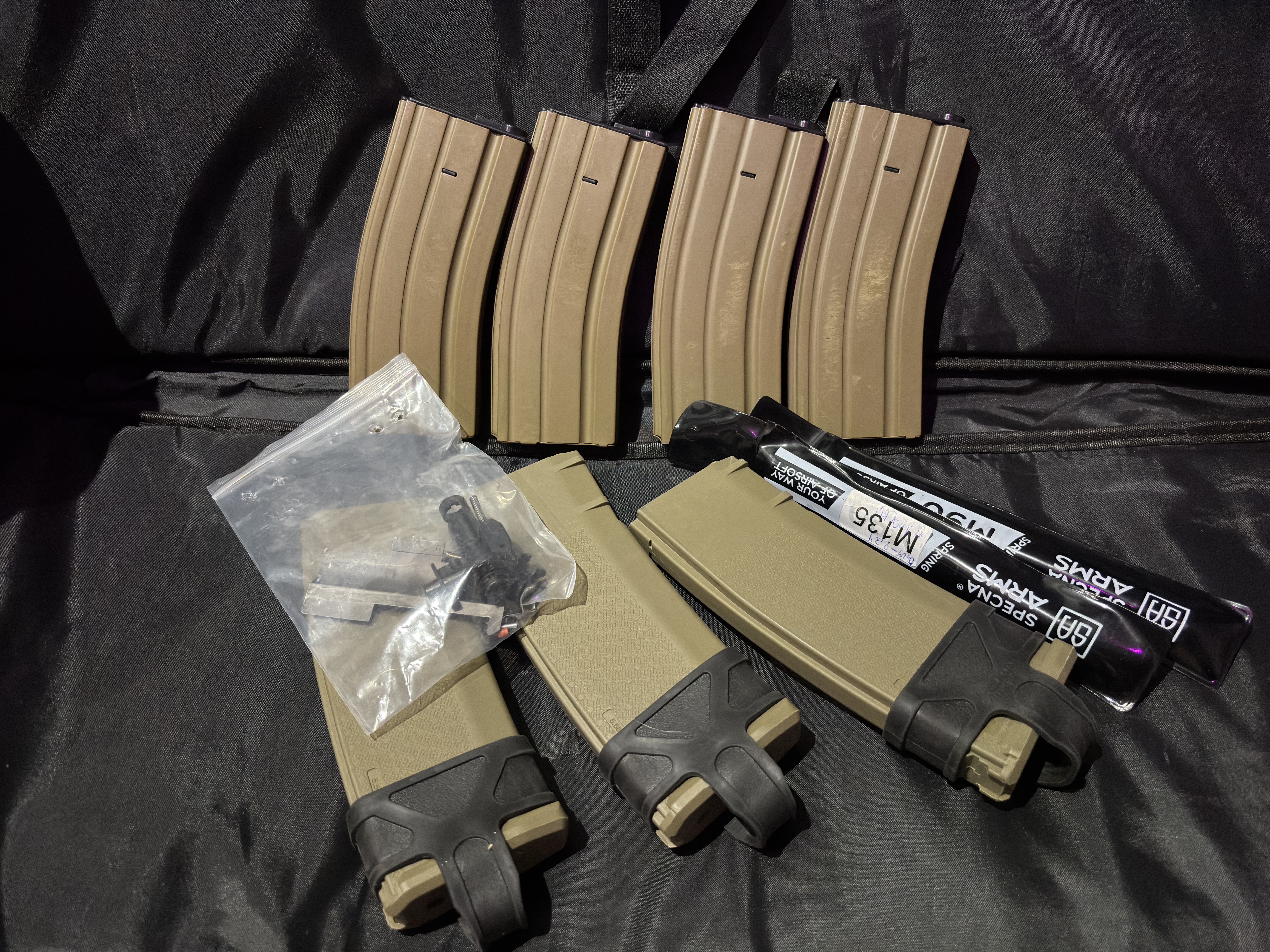 Używana 3 razy W zestawie: - Karabin - Maxx Model M4E z gumka - Victoptics S6 - 7 Magazynków - Latarka Wadsn - Stary hop up, sprężyny i inne widoczne akcesoria *jedyny minus to pęknięty plastik w dźwigni zamka więc radzę kupić nową, ale to szybka i tania wymiana. nie zaburza pracy repliki.