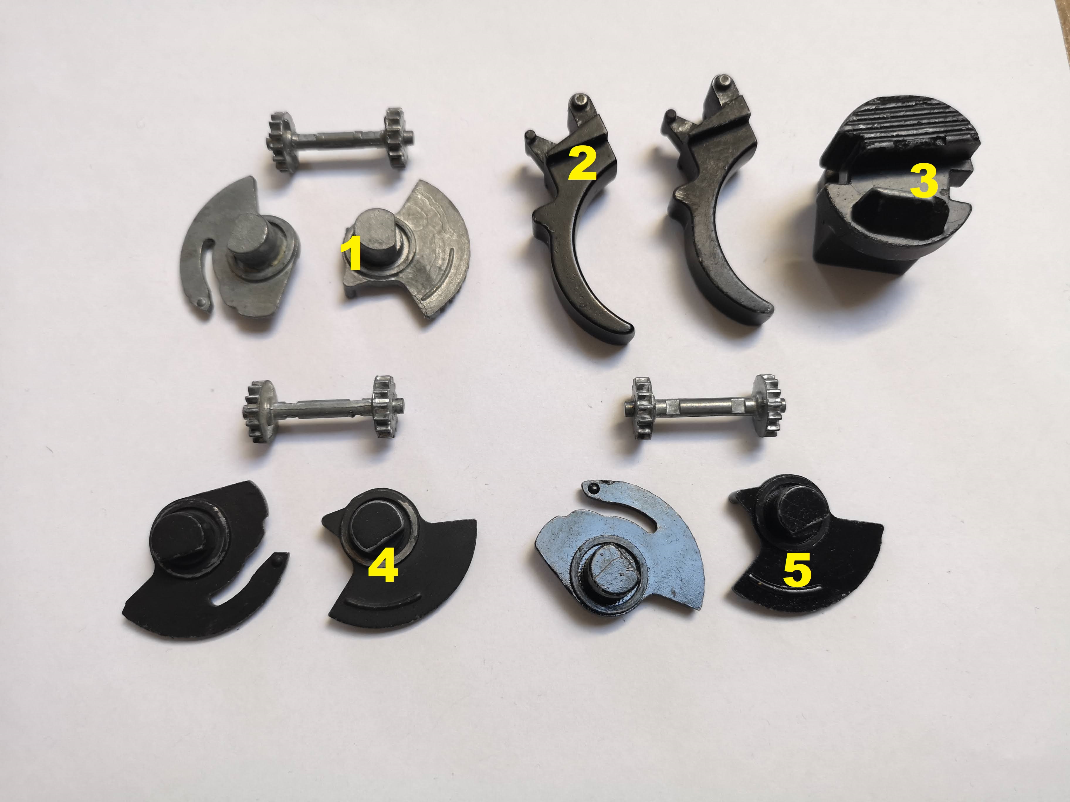 Części G36 zębatki selektora, spust, przycisk kolby, przeziernik