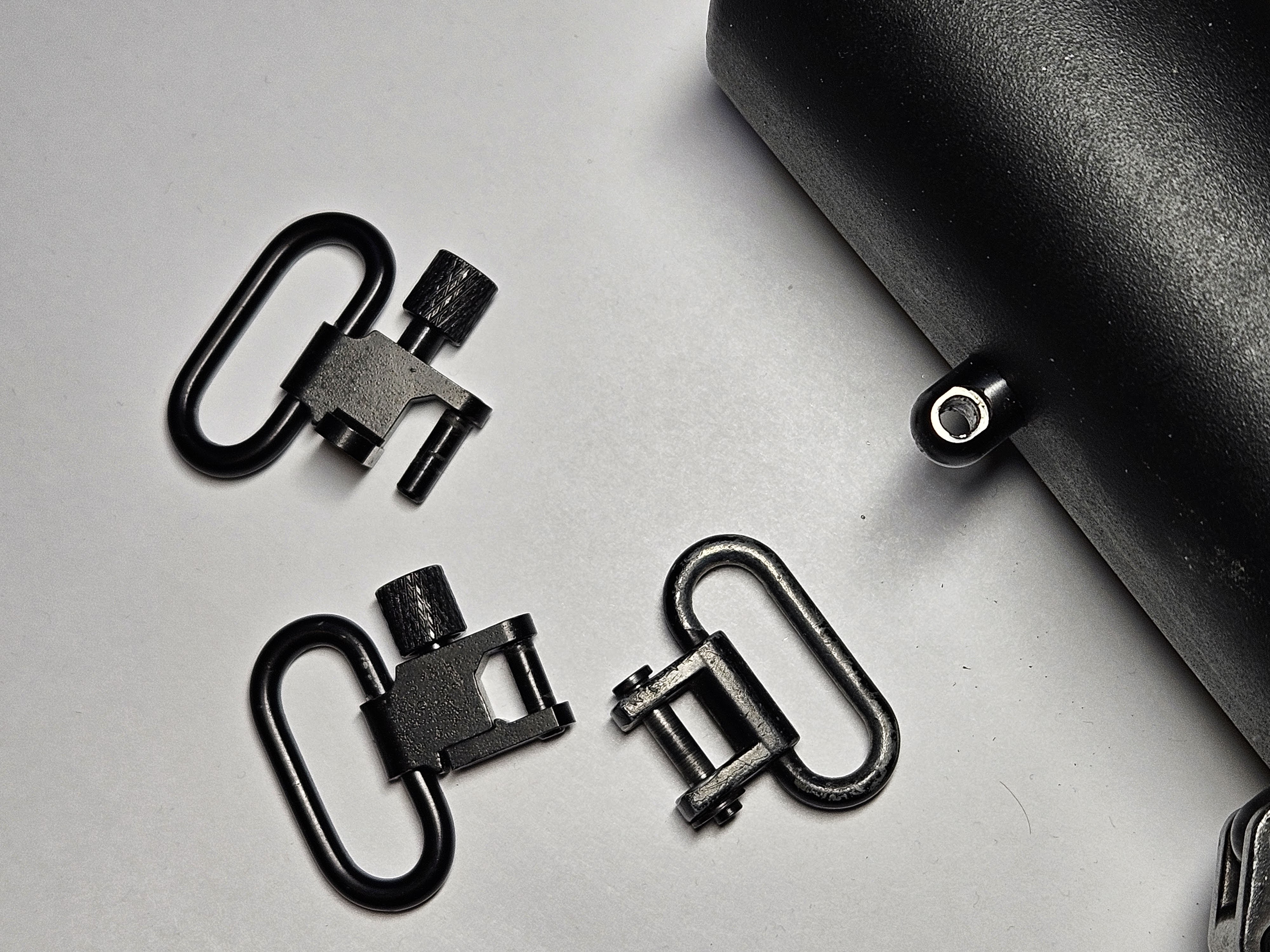 Mam na sprzedaż różne uchwyty zawieszenia. - Uchwyt zawieszenie do z gwintem na śrubę M3 lub M4 stalowe 10zł/szt, metalowe z ZnAl 5zł/szt - Uchwyty zawieszenia RAS na szyne 22mm RIS kopia Magpul - 20zł/szt - Uchwyt zawieszenia na tzw. bączek - 10zł/szt - Ucho, zaczep QD wciśnij kropek/wcisk - 10zł/szt - Ucho, zaczep QD wciśnij kropek/wcisk z montażem adapterem na Key-Mod, M-Lok - 25zł/jeden zestaw