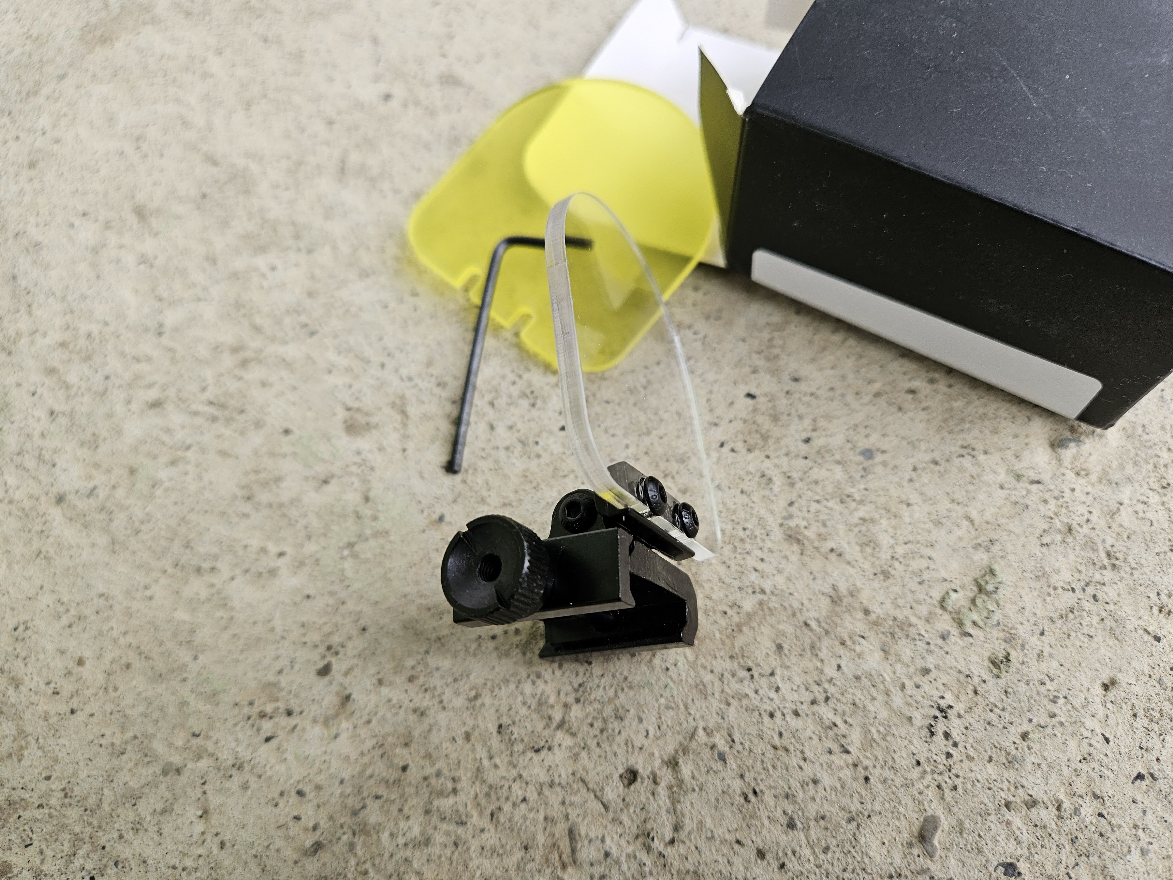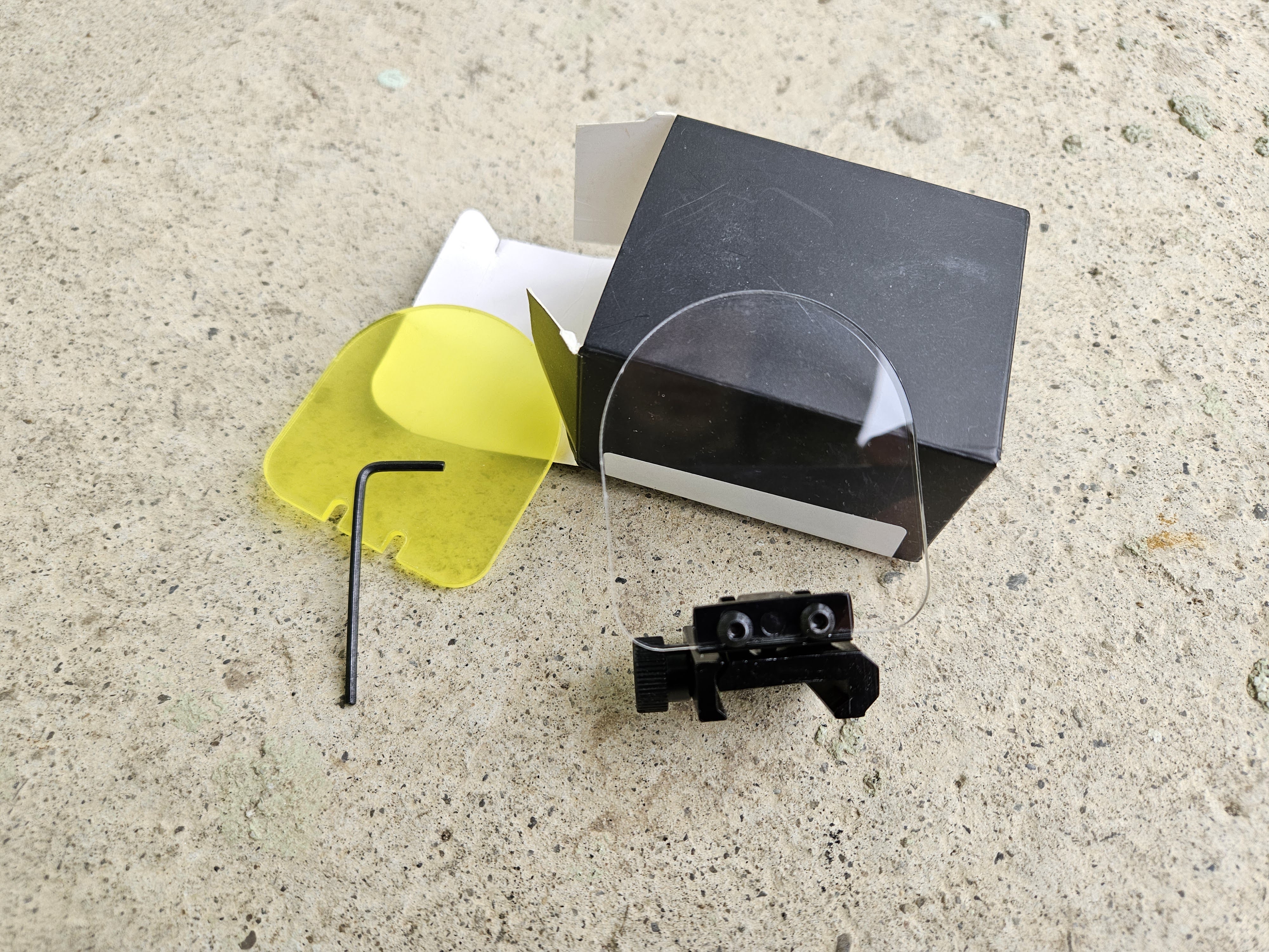 Mam na sprzedaż praktycznie nową składaną osłonę zapobiegającą zbiciu soczewek przez kulkę w przyrządach celowniczych. Osłona montowana na standardową szynę 22mm w zestawie dwie szybki przeźroczysta/żółta obie bez żadnych rys.
