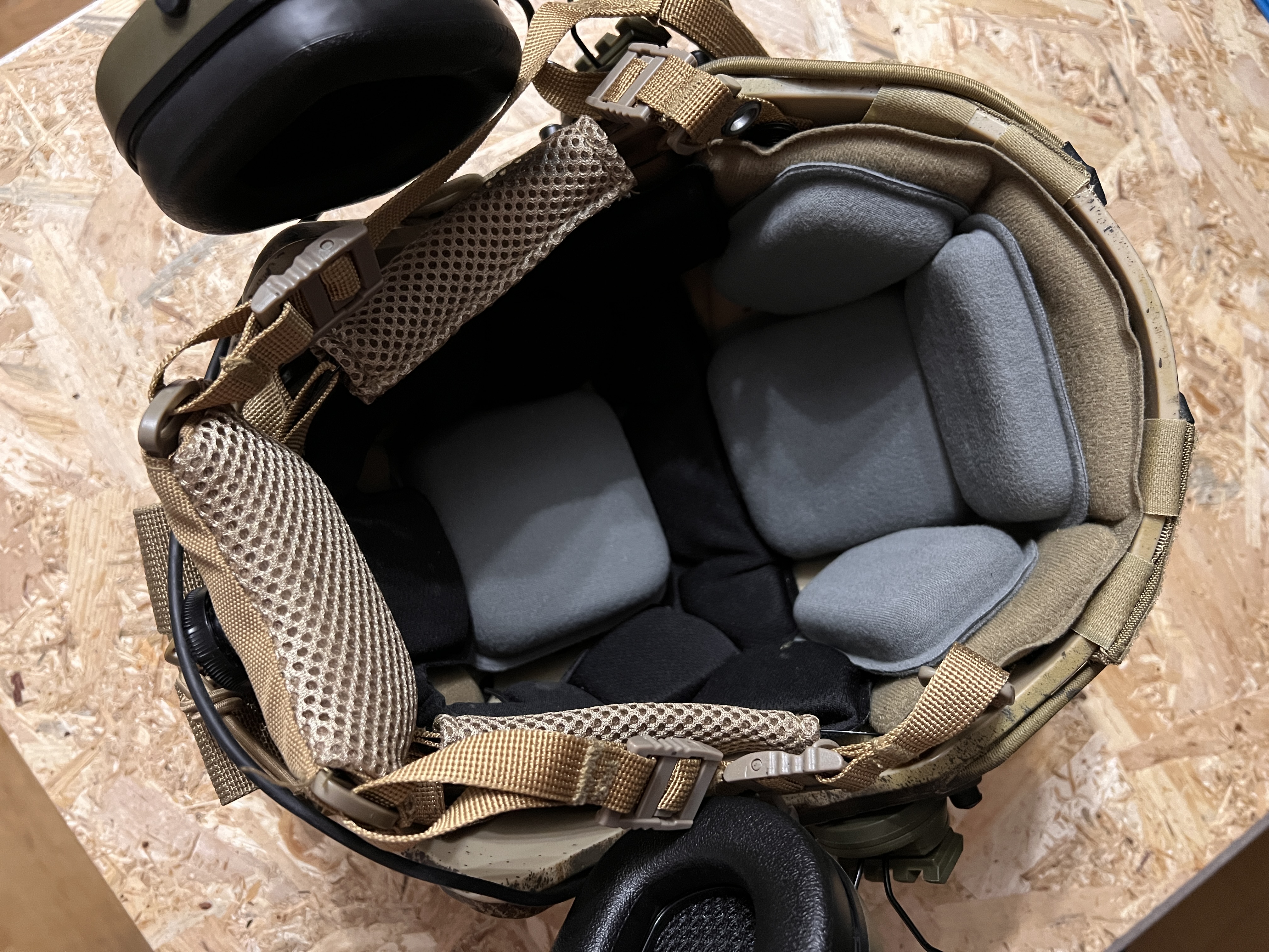 Hełm w doskonałym stanie. Był na dwóch strzelankach. W zestawie: * replika hełmu (pomalowana) * upgrade’owane poduszki * pokrowiec w kolorze coyote brown z miejscem na powerbank do kamery * słuchawki aktywne z montażem Możliwy odbiór osobisty w Warszawie.