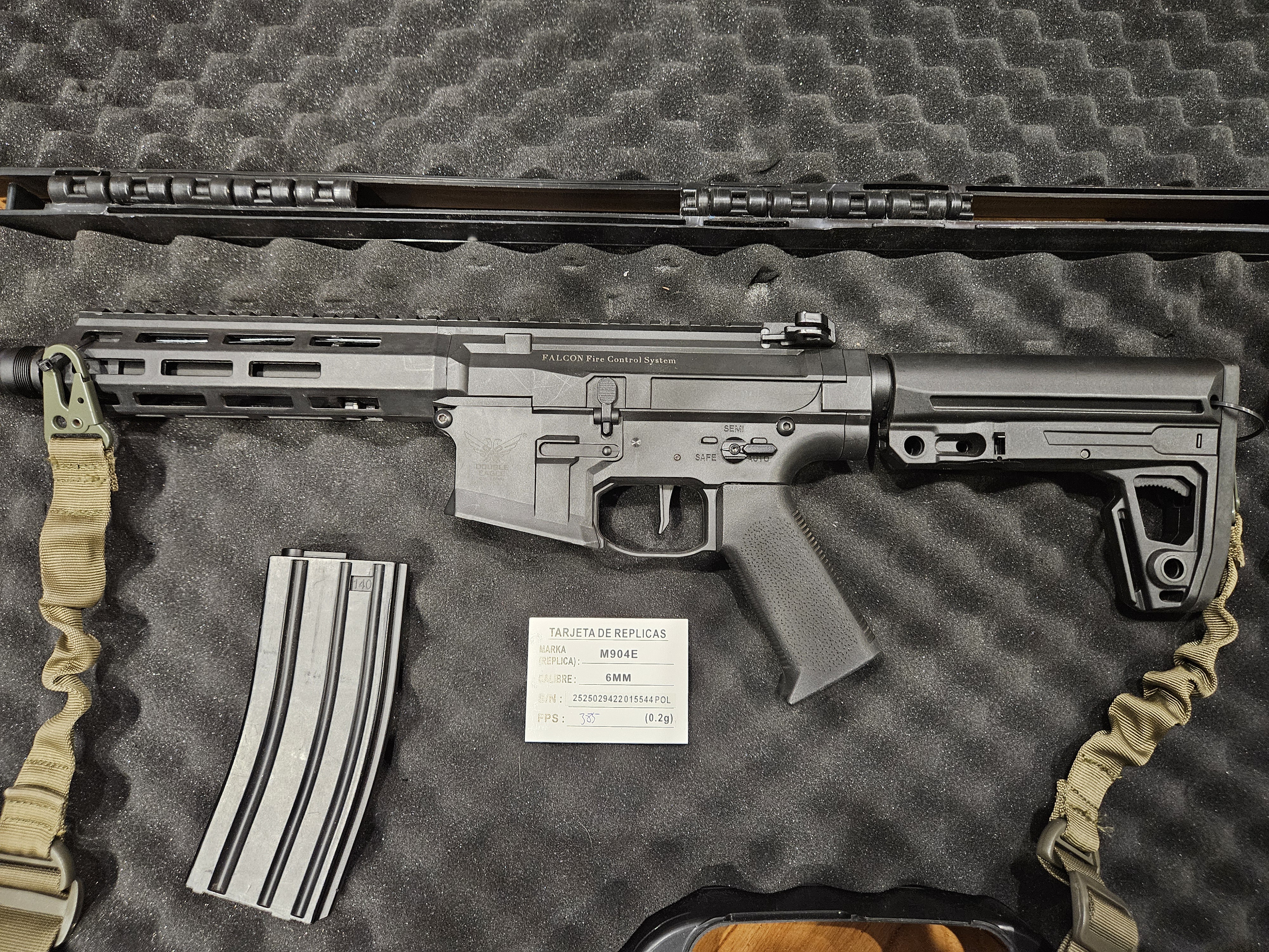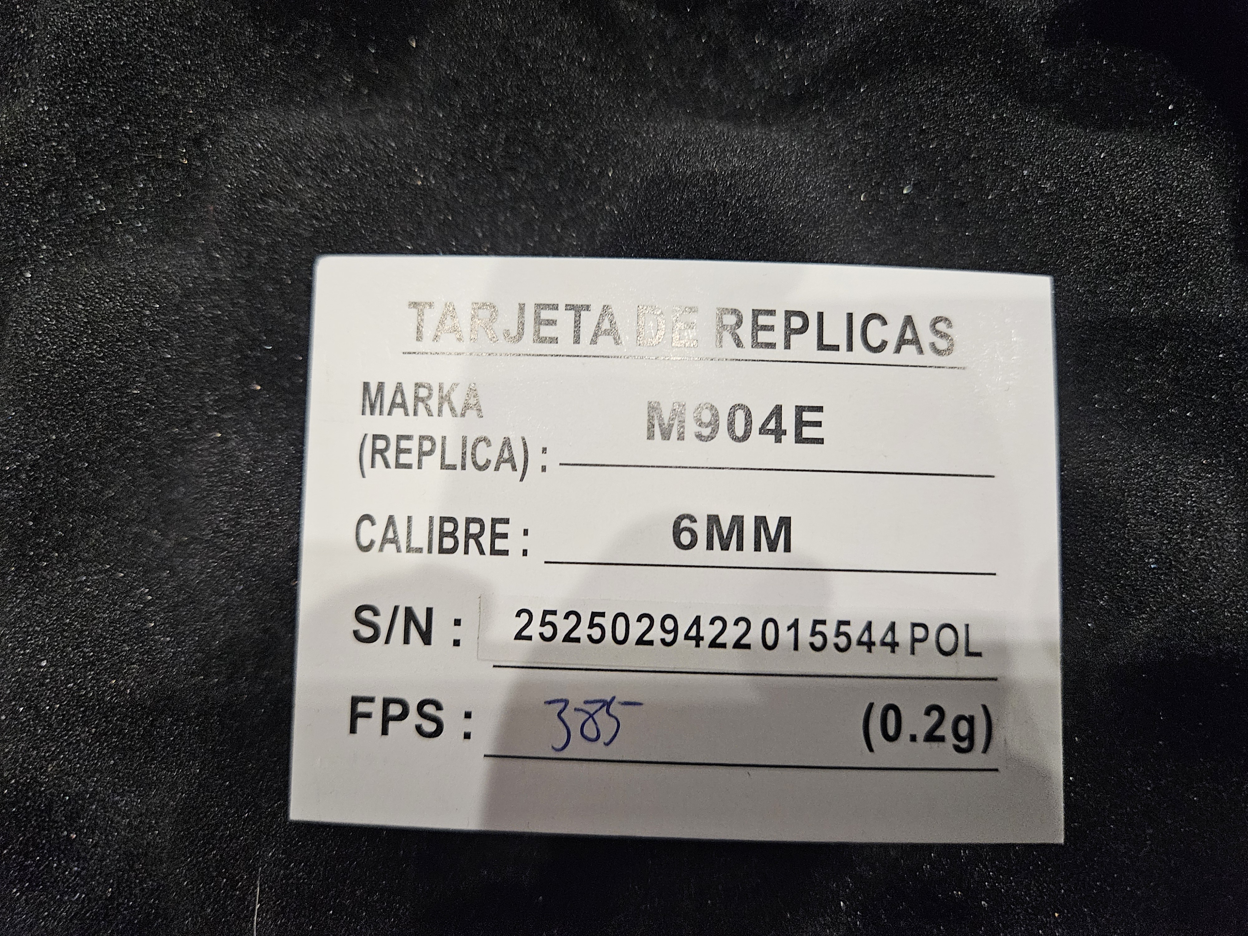 Replika M904E bez akumulatora z walizką z 5 mid capami. Replika leży od roku poprzez zaprzestanie gry w asg.