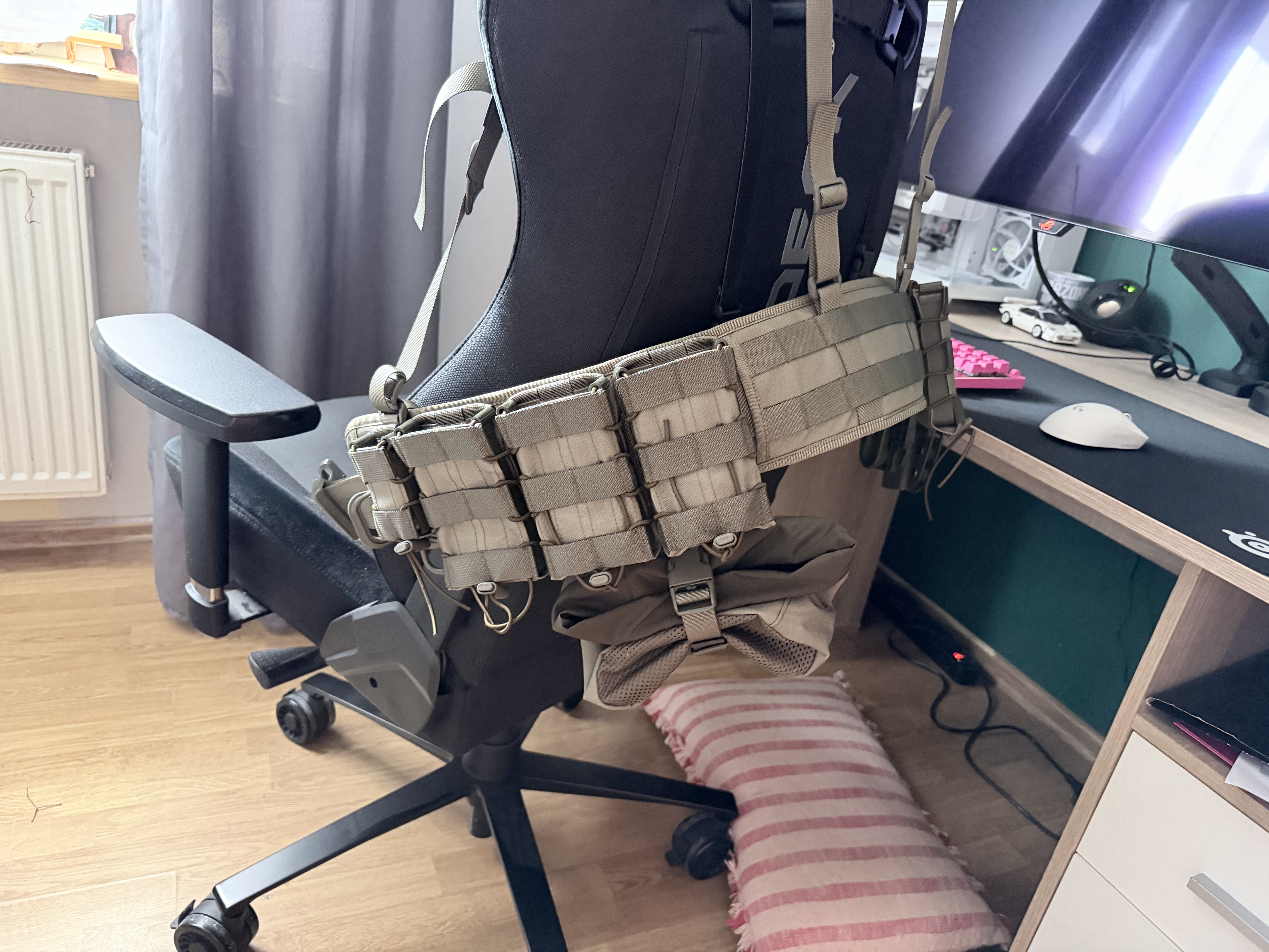 Sprzedam pas taktyczny z szelkami/ladownicami. Wszystko firmy Miltur. W zestawie. Pas biodrowy XL 4x ładownica otwarta(ar) 1x ładownica pistoletowa Worzek zrzutowy na magazynki Pokrowiec na radio. Zestaw zakupiony 16 marca 2026. Wszystko w RG. Chce za całość 600zl. Stan wzorowy.