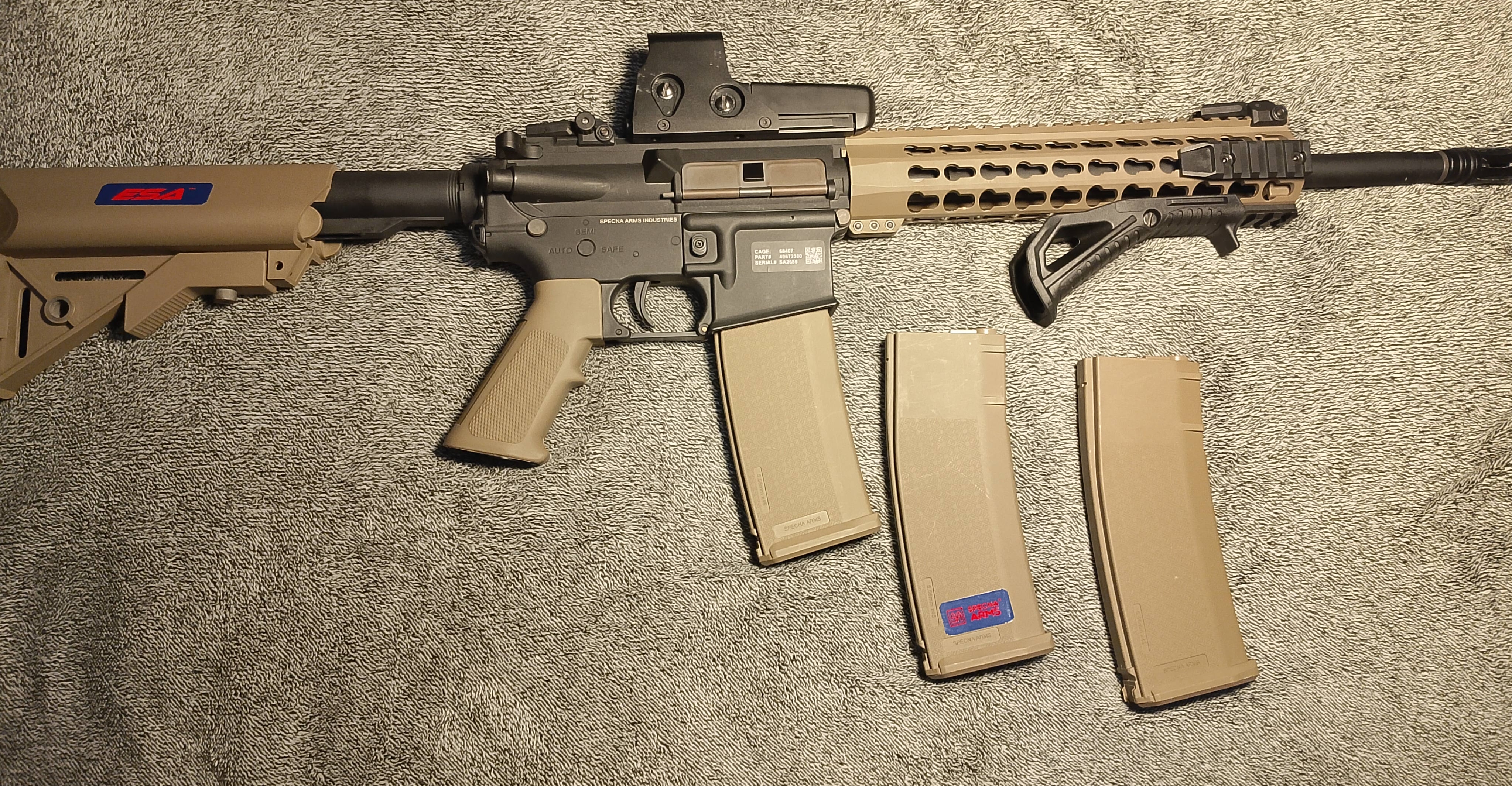 Witam sprzedam replikę specna arms flex sa-02 w komplecie z: 3 magazynkami 2 mid-cap i 1 hi-cap Uchwytem Kolimatorem advance 552 R/G Ładowarką LI-PO LI-FE Akumulatorem LI-PO 7,TV 1300mAh Chicom chest wood Torbą do transportu Szelką do repliki z gumą Kulochwytem i tarczami Wyciorem do czyszczenia Sprężyną do wymiany Stan repliki bardzo dobry mało używana i zadbana na dodatkowe pytania odpowiem