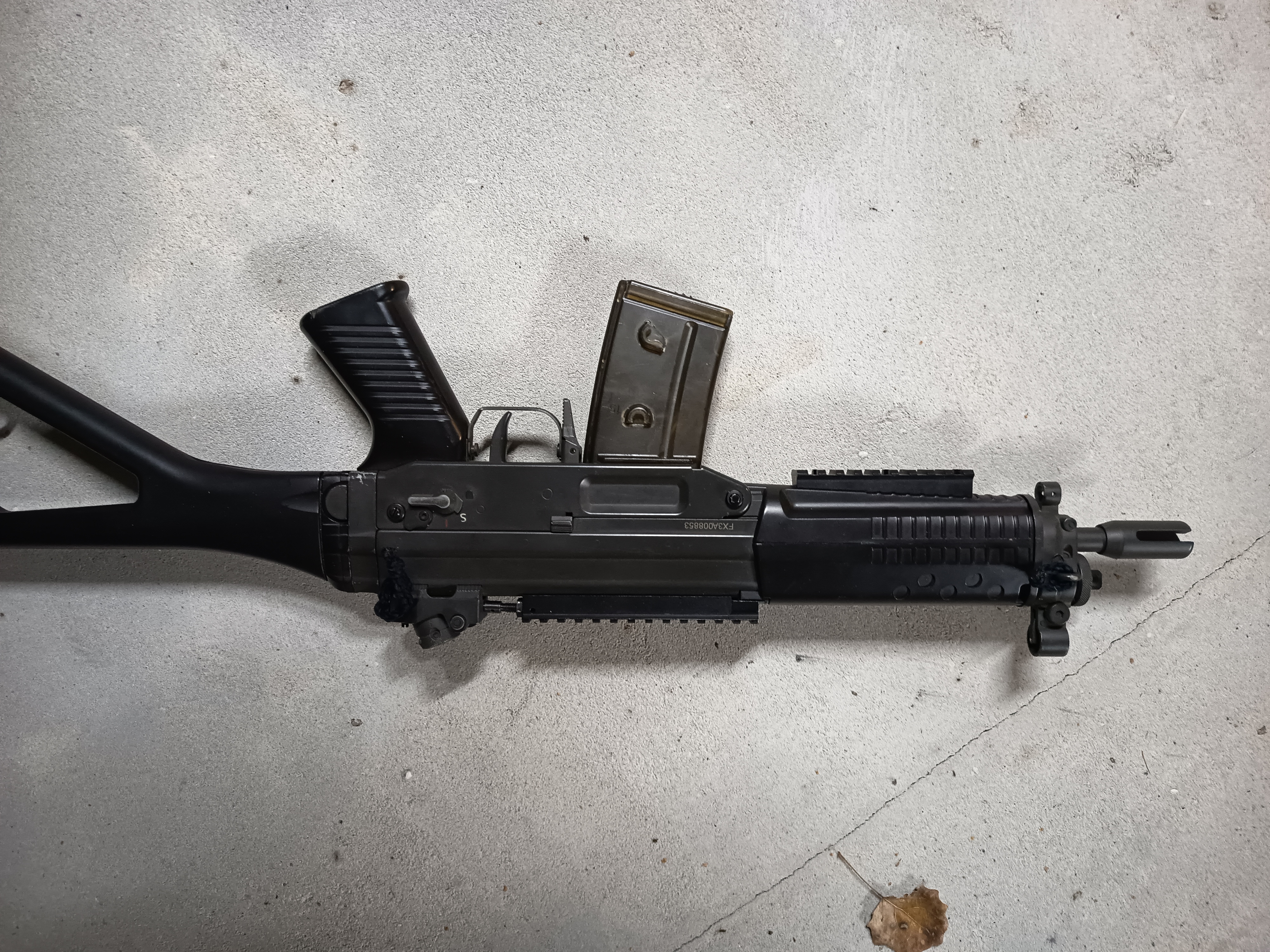 Witam. Sprzedam replika sig552 marki JG wersja z polimerowym korpusem Replika kompletna strzelająca ale przydało by się zrobić przegląd gearboxa. Jedyny problem jaki występuje to odgłos cofających się zębatek po strzale. Wymienione kable i wtyczka na tdeans Sprzedaję replikę + magazynek