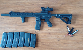 Replika G&G cm16 srxl, san dobry lecz widać po nim ślady użytkowania, działa bez zarzutów, do karabinu dołączony jest kolimator "Specna Arms", luneta "Magnifier 3x35 v2 Theta Optics" oraz tłumik. Moc wylotowa to ok. 400fps. W zestawie dorzucam 3 magazynki: 2 mid-cap i 1 hi-cap, akumulator z ładowarką oraz kulki 0.28g i 0.30g. Akumulator polecałbym wymienić ze względu na to, że karabin leżał długo nieużywany.