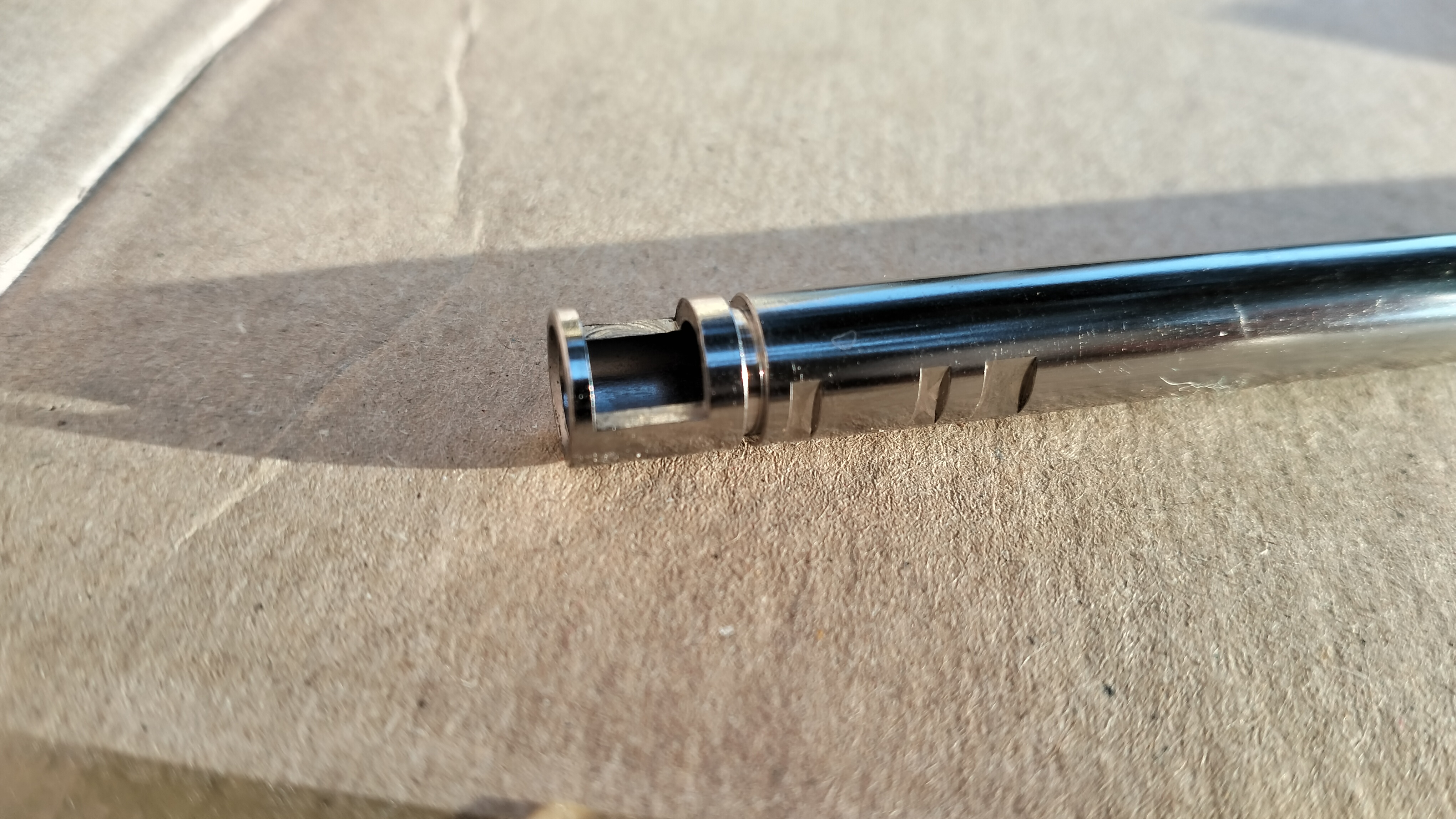 Do sprzedania lufa jak w tytule. Stan bdb/idealny. Brak uszkodzeń, w środku lusterko. Używana w dmrce. Niewielki przebieg. Lufa przyzwoitej klasy. Posiada frezy na gumki z dodatkowym pierścieniem i frez na końcu na o-ring. Okienko HU bardzo duże, sprzyja stosowaniu gumek z większymi elementami podkręcającymi i innym eksperymentom. W zestawie gumka, dystanser i pierścień stabilizujacy - nieużywane. Mogę gdzieś wystawić.