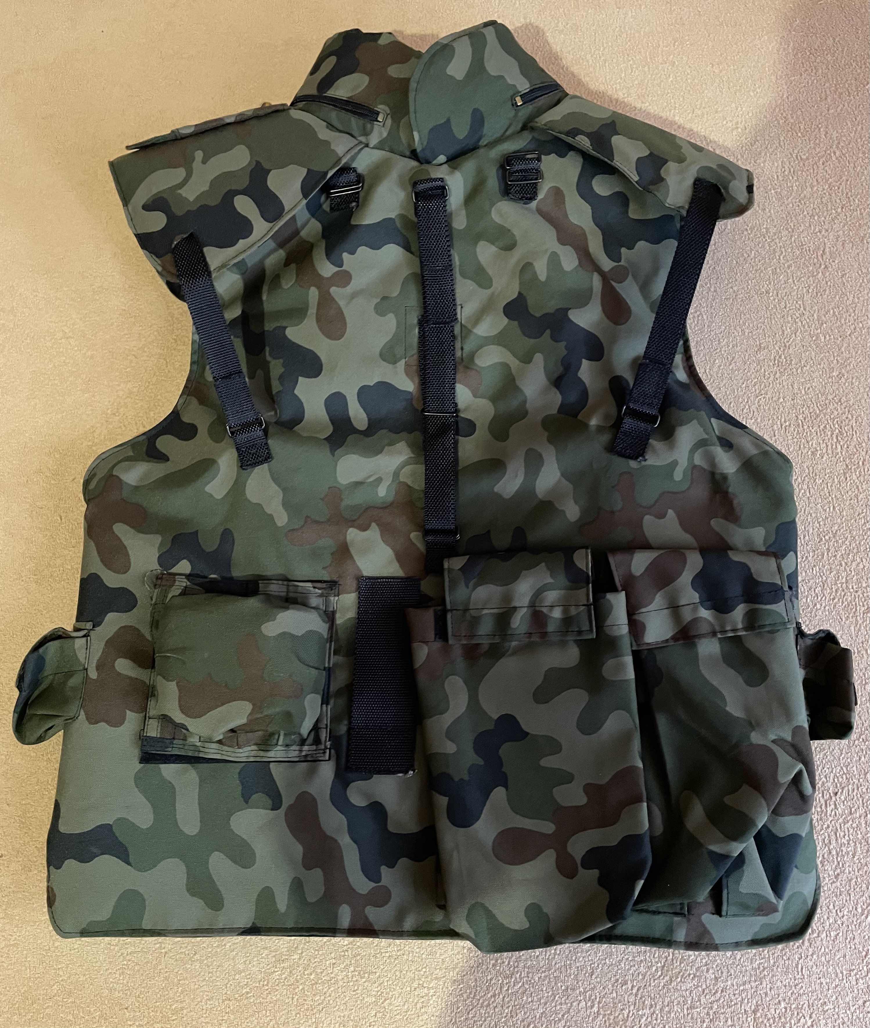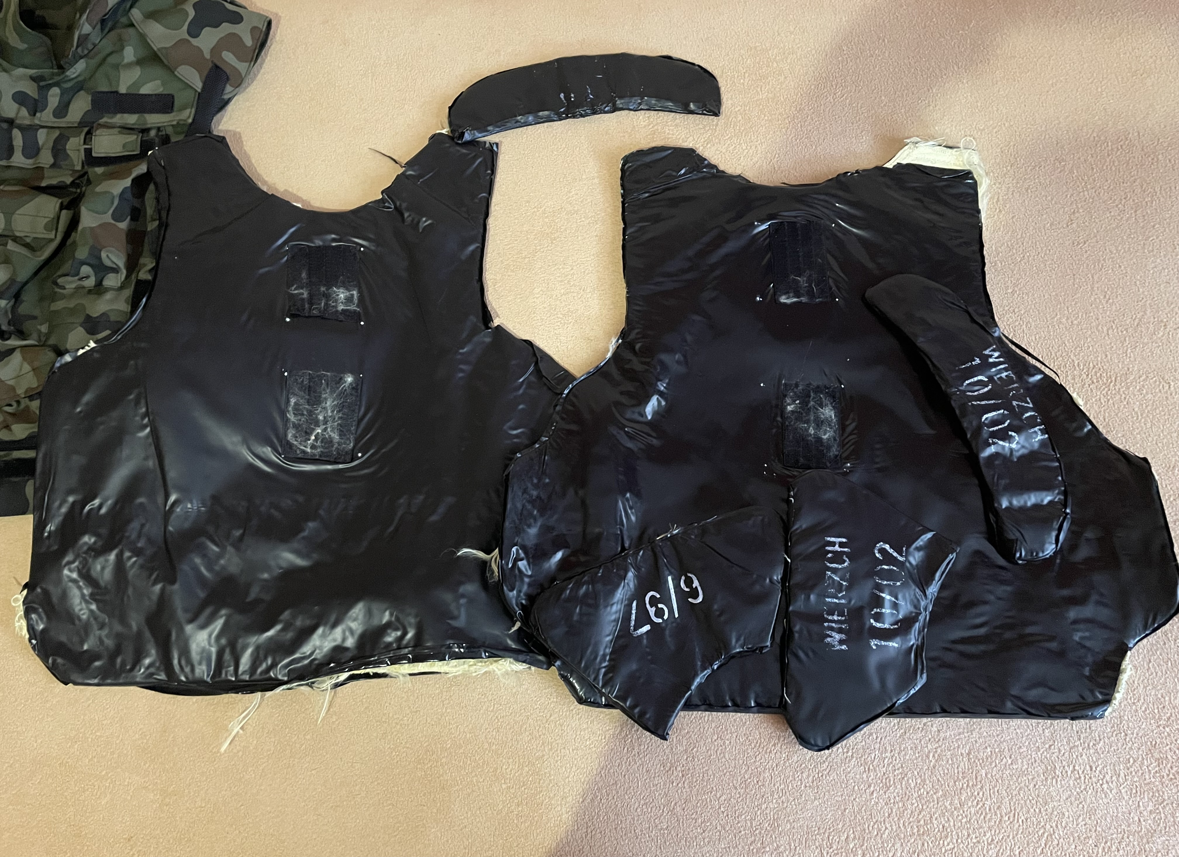 Używana kamizelka OLV firmy lubawa z kompletem wkładów Brak płyty stalowej Rozmiar XXL Poszycie kamizelki w stanie bardzo dobrym bez przetarć,dziur i plam,kolory żywe nie sprane Wkłady nie „podziurawione” całe Poszycie wkładów wykonane z gumo-folii-ceraty w niektórych miejscach rozklejone i spękane co jest widoczne na zdjęciach Wkłady 25-letnie więc dawno po terminie przydatności i pozbawione cech użytkowych Produkt wyłącznie kolekcjonerski Możliwa wysyłka Olx https://m.olx.pl/1068511981/?bs=olx_pro_listing