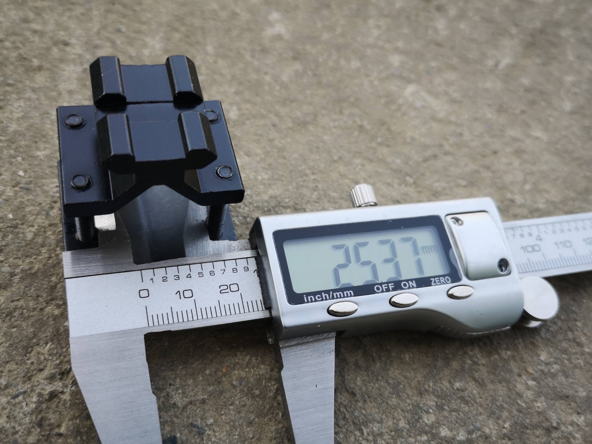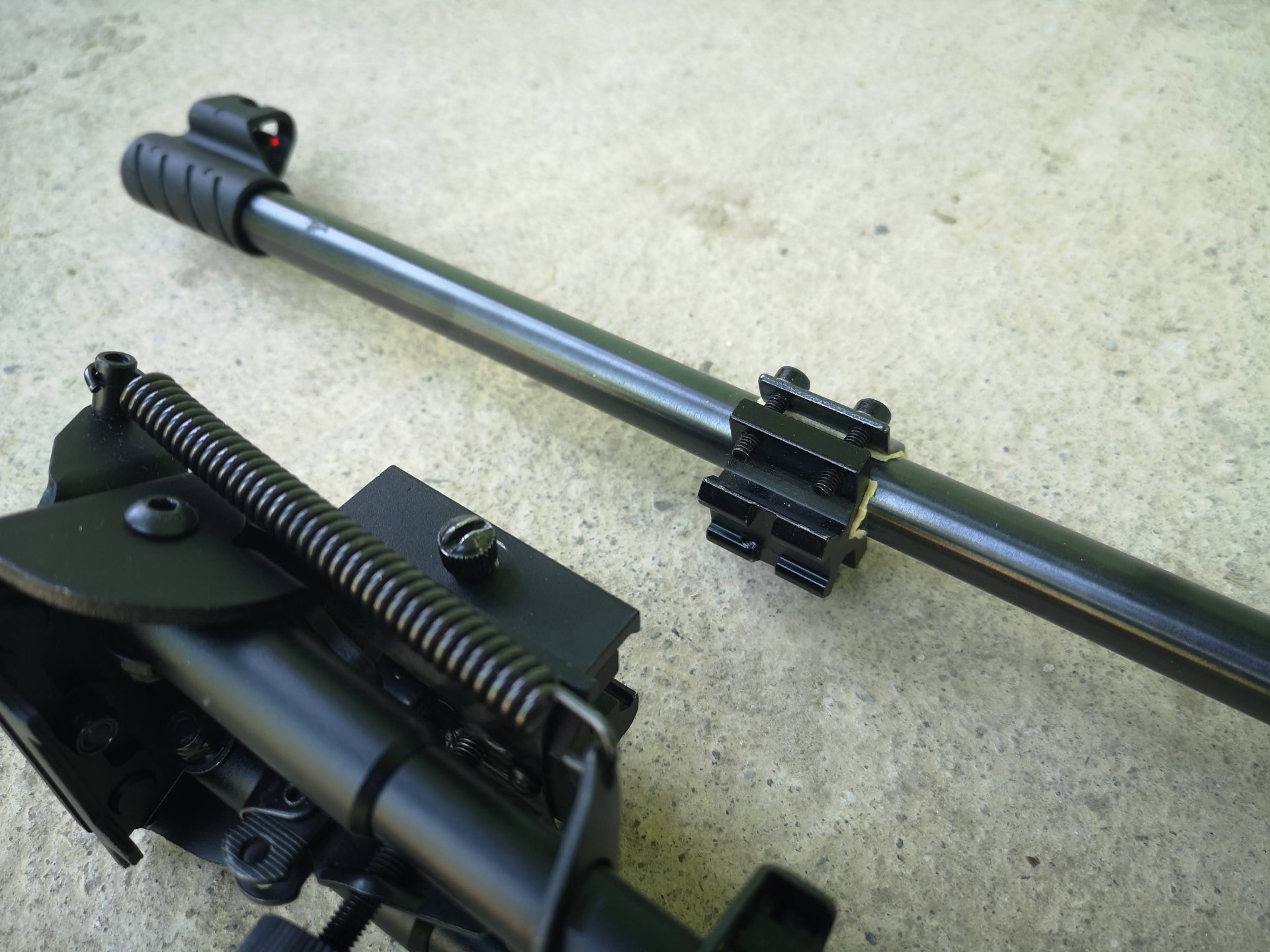 Mam na sprzedaż widoczną przejściówkę, montaż z standardową szyną 22mm umożliwiający przykręcenie go np. na lufę i zamontowanie dodatkowych akcesoriów w standardzie RIS/RAS. Uchwyt jest prosty bez żadnych uszkodzeń z kompletem śrub.