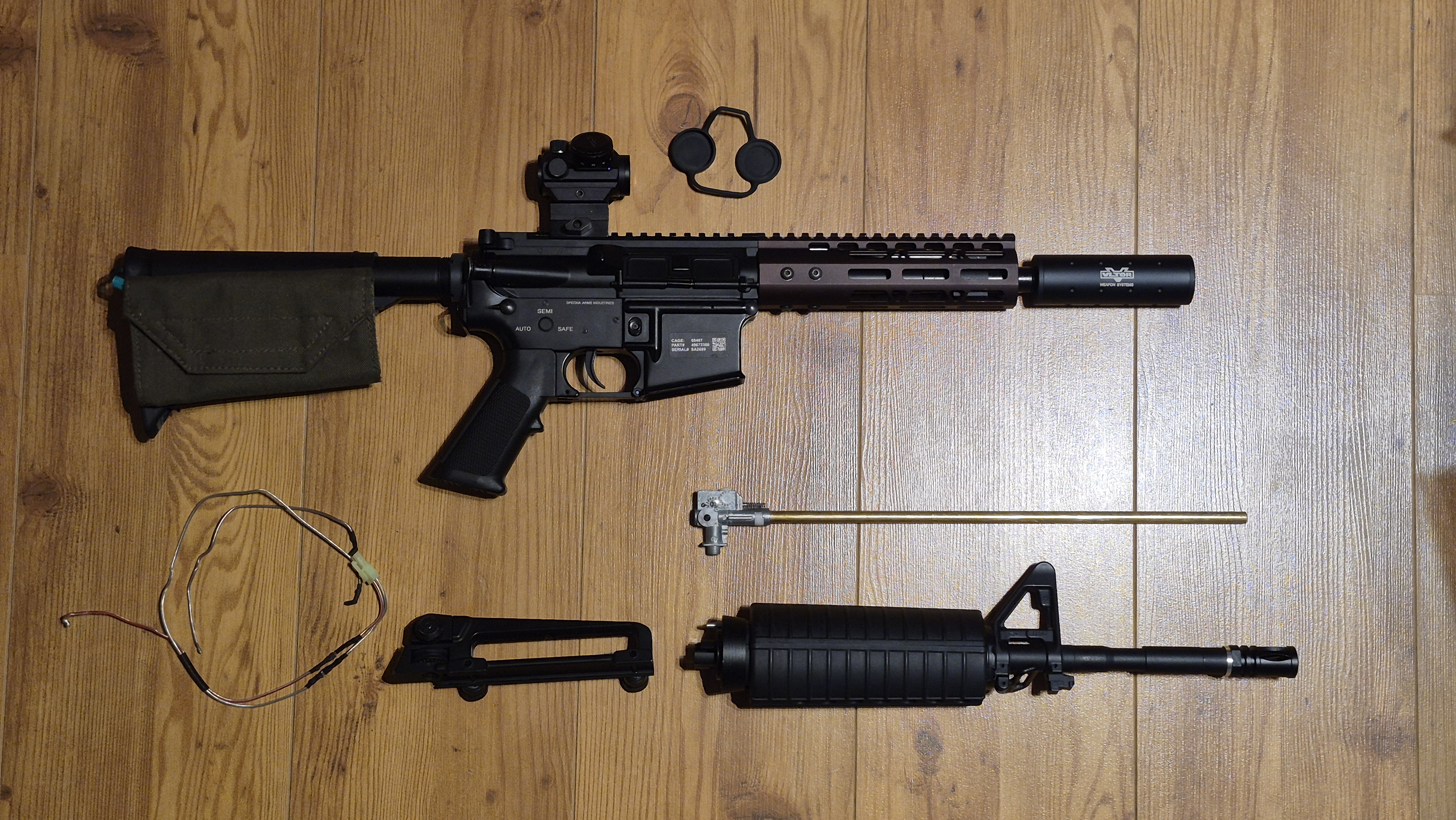 Sprzedam Specnę B02 z 2 frontami, oryginalnym ze stockową komorą i lufą wewnętrzną i złożonym customowo z komorą prowin i lufą (wydaje mi się, że skracany Guarder). Okablowanie zmienione pod mosfety Gate Merf 3.2 i podobne (mosfet nie jest w zestawie). W komplecie z oryginalnym okablowaniem, więc można przywrócić pierwotną funkcjonalność. Sprzedaję razem z rączką transportową, dodatkową sprężyną i kolimatorem (dostał kulkę, ale jest sprawny) Ostatnie chronowanie na Aegisie 2025 wykazało około 1,7 J czyli jakieś 420-430 fps @ 0,20. Gearbox stock.