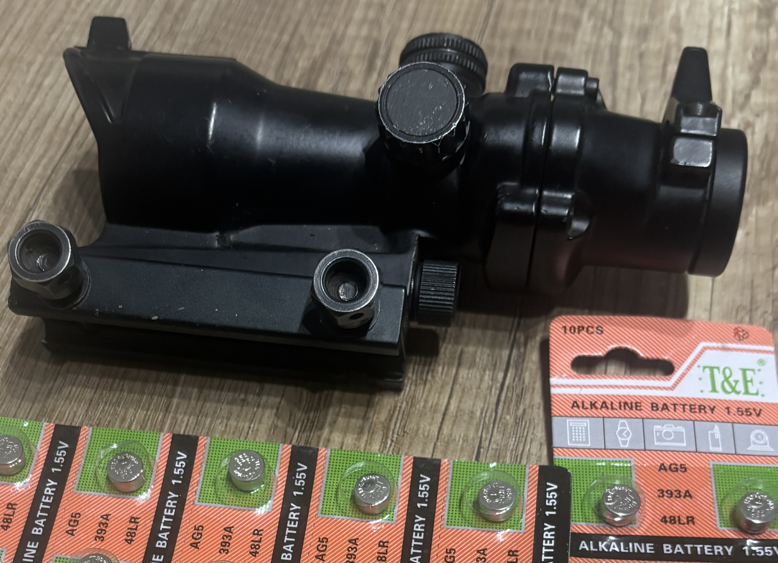 Dobry wysłużony ACOG z Polskiego sklepu(armytech) dawałem za niego 250pln służył dzielnie wiele lat na strzelankach ma delikatnie zbitą optyke lecz nie przeszkadza to w użytkowaniu nie jest z chińskiego sklepu 2 kolory red i green 4 tryby 2 jasne i 2 ciemne W gratisie daje 3 blistery baterii o wartości 100pln