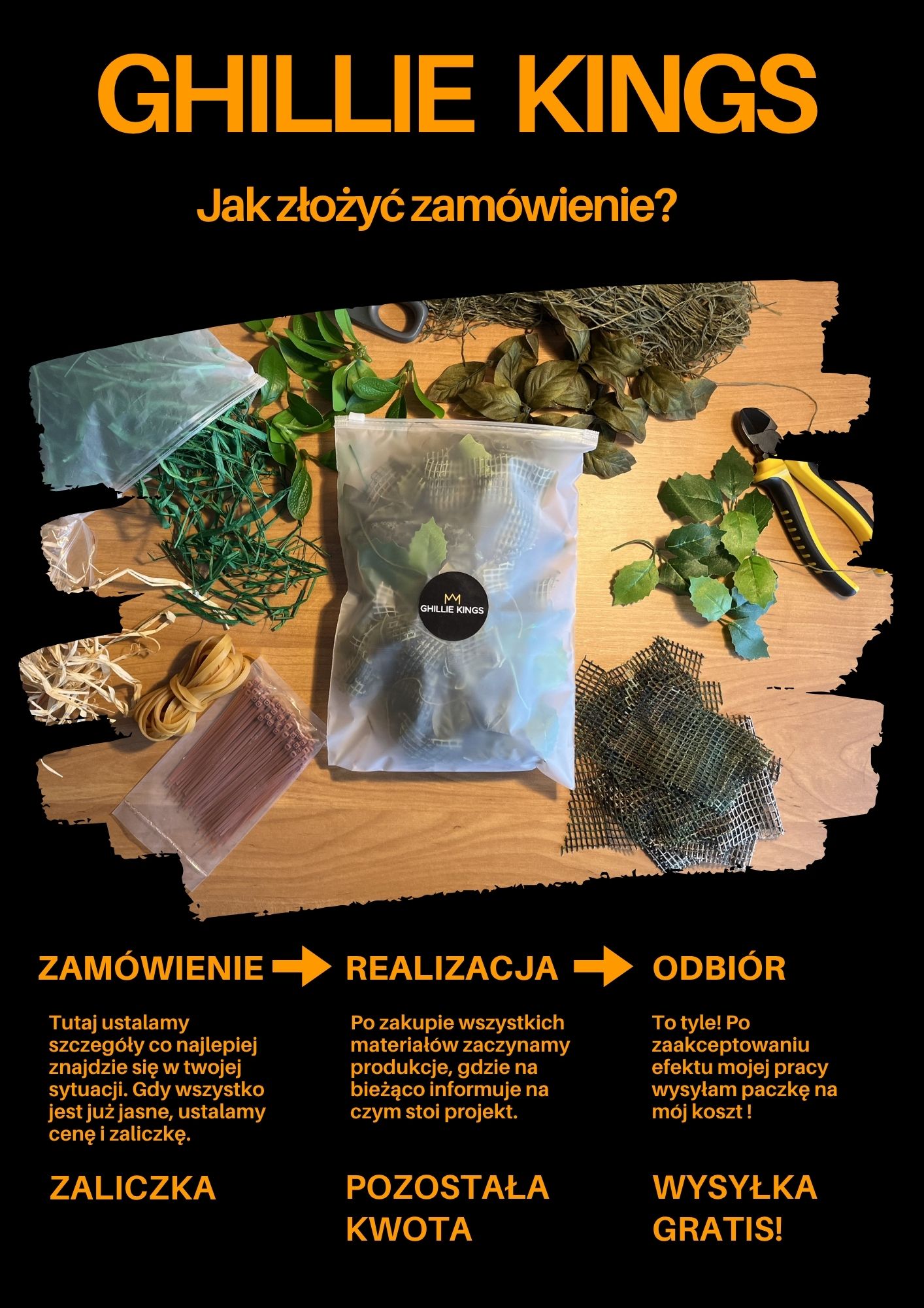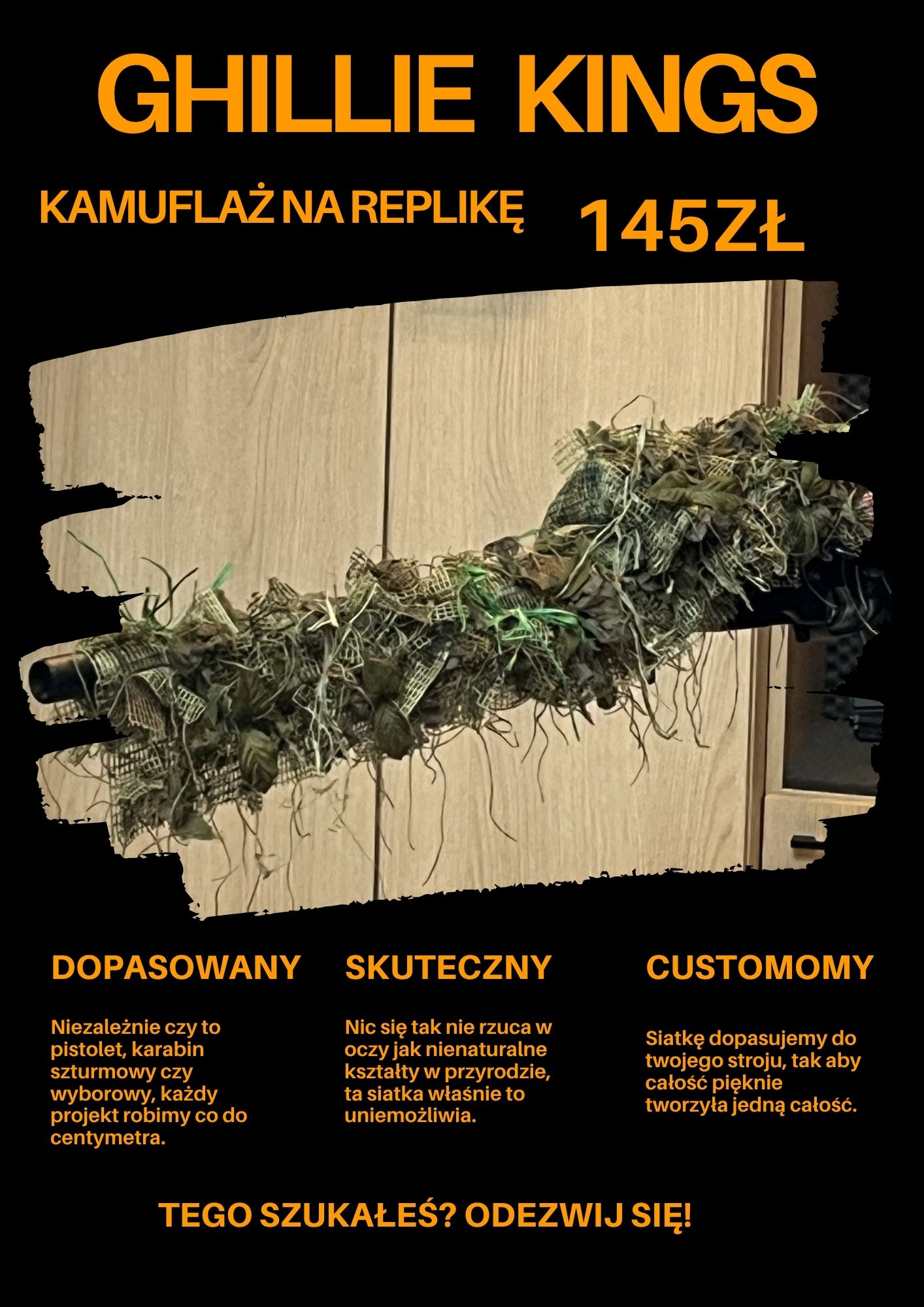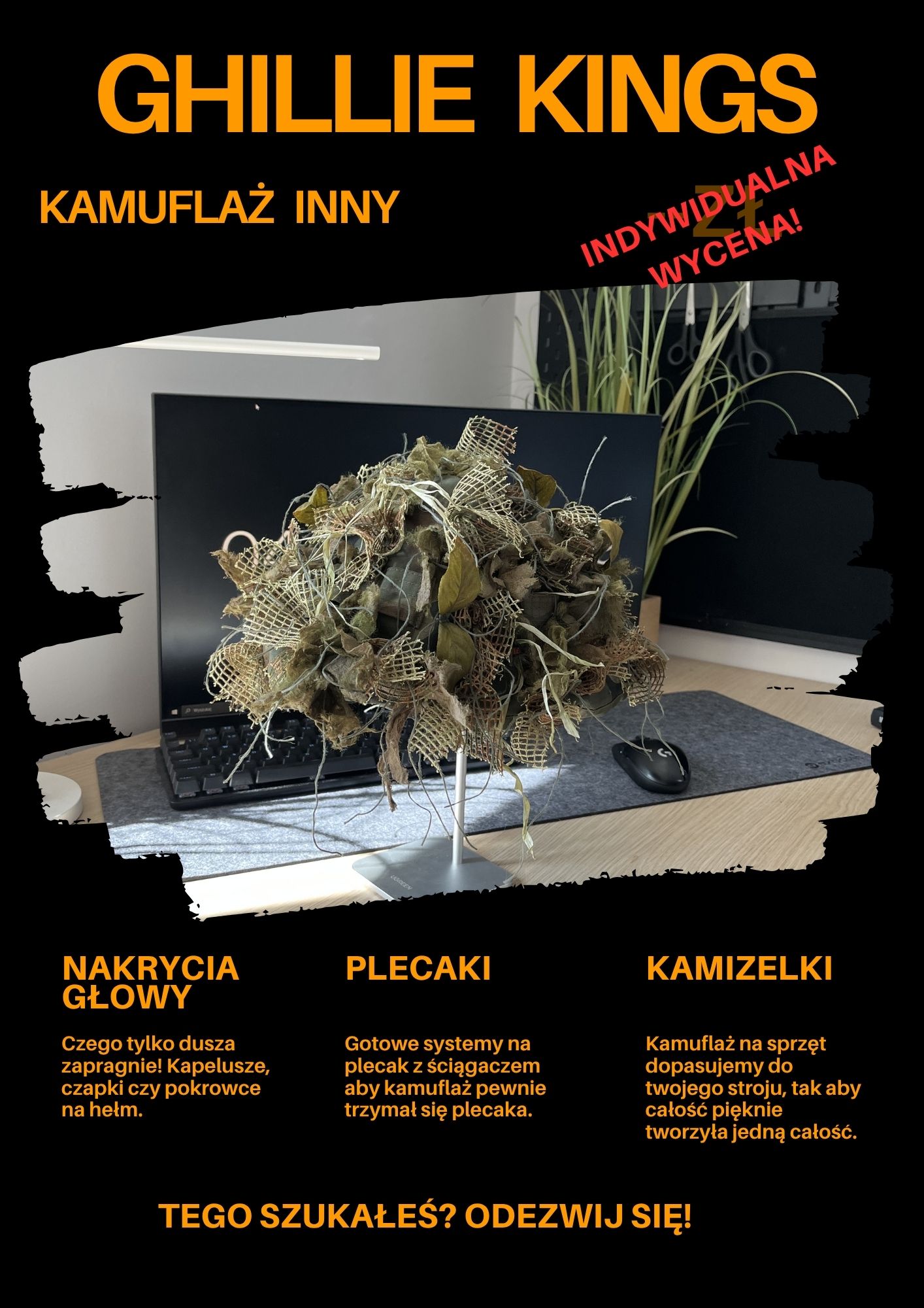 Ghillie Kings – Ręcznie Robione Stroje Maskujące Szukasz kostiumu który naprawdę działa? Nie chińskiej podróbki która się rozpada po pierwszej strzelance – tylko czegoś zrobionego z głową, na miarę i na lata. Nazywam się Dominik i od kilku lat ręcznie tworzę stroje maskujące w dedykowanej pracowni. Każdy kostium który wychodzi z moich rąk jest indywidualny – dopasowany do Twojego terenu, stylu gry i sprzętu. Co mogę dla Ciebie zrobić: - Ghillie Suit – pełny kostium maskujący - Viper Hood – kaptur maskujący - Kamuflaż na replikę - Kamuflaż na rękawiczki, kapelusz, oporządzenie - Dokończenie Twojego własnego projektu Dlaczego Ghillie Kings: Używam starannie dobranych materiałów które nie odpаdają nawet przy intensywnym użytkowaniu w terenie. Montuję w sposób który sprawdził się w praktyce – u airsoftowców, survivalowców i żołnierzy. Każdy projekt konsultuję z klientem na każdym etapie – wiesz co się dzieje z Twoim zamówieniem od pierwszego do ostatniego dnia. 5 lat działania - blisko 30 kostiumów - Zero reklamacji. Same 5 gwiazdkowe mówią za siebie! ⭐⭐⭐⭐⭐ Gwarantuję: - Indywidualny projekt dopasowany do Twoich potrzeb - Trwały montaż sprawdzony w akcji - Stały kontakt na każdym etapie produkcji - Eleganckie opakowanie - Niezapomniane chwile na strzelankach - Satysfakcję – nie zamykam projektu dopóki nie jesteś w 100% zadowolony Wszystko ustalamy z wyprzedzeniem – bez niespodzianek, bez problemów. Możesz znaleźć mnie na Instagramie i Facebooku gdzie zobaczysz efekty mojej pracy i opinie klientów ! Wystarczy że napiszesz czego szukasz, a przygotuję dla Ciebie indywidualną, darmową wycenę! 696269372
