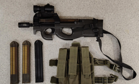 Replika ASG Tokyo Marui P90 TR z akcesoriami.