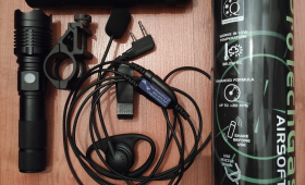 Słuchawka PTT, tłumik dźwięku, latarka, montaż, green gas