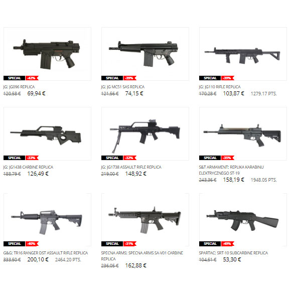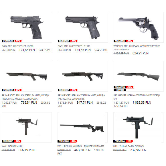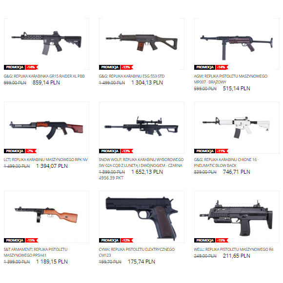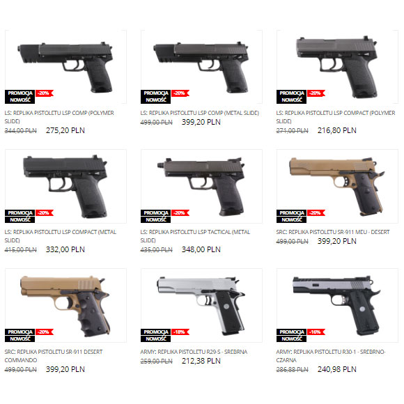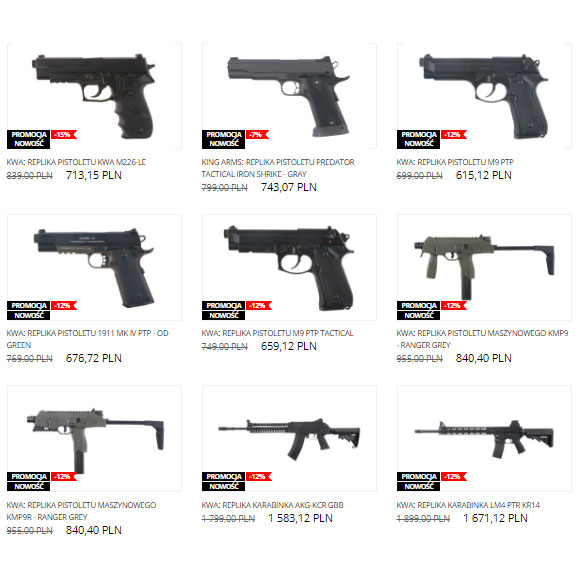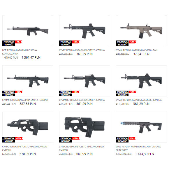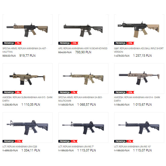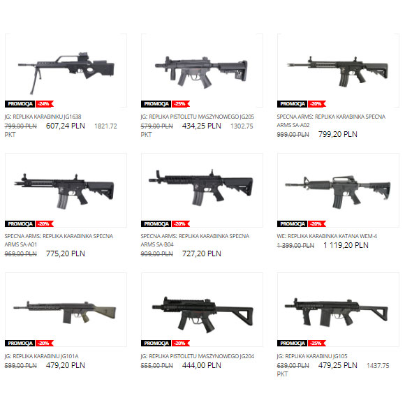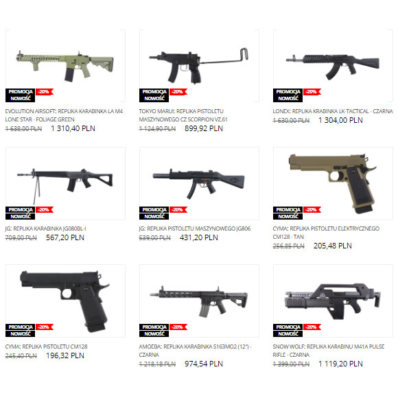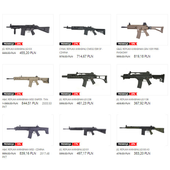 Wśród nowości znajdziecie bogaty wybór replik, który poszerzyliśmy o karabiny Specna Arms, snajperki WELL, sporo modeli replik od G&G i Tokyo Marui oraz pistolety Army i KJ Works. Przeglądajcie naszą ofertę dokładnie, kryje się w niej pełno wyjątkowych okazji jak na przykład repliki ICS czy A&K w mocno obniżonych cenach.