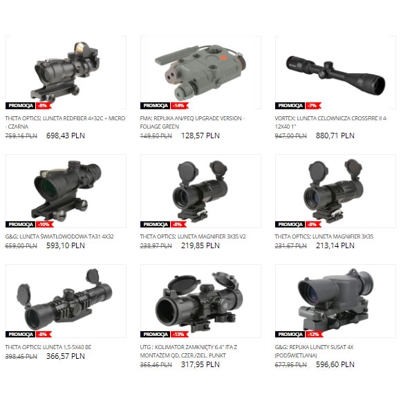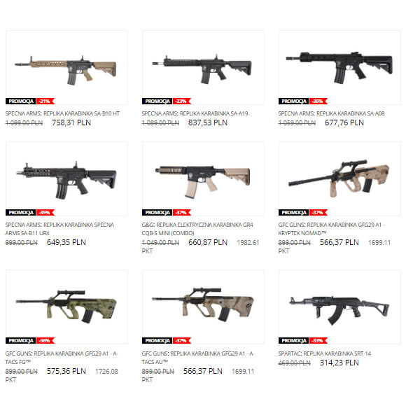 To jednak nie wszystko! Oferta specjalna powiększyła się o setki różnego rodzaju elementów wyposażenia. Ochraniacze Alta, rękawice Armored Claw, plecaki i torby Wisport czy ubrania 5.11 Tactical to tylko niektóre z nich. Nie zabrakło również części od chwytów i kolb po dysze i gumki hop-up. W promocji znajdziecie aż 4500 produktów do -70%.  Jednak najgorętsze okazje szybko znikają, dlatego już teraz skorzystajcie z największych zniżek.
