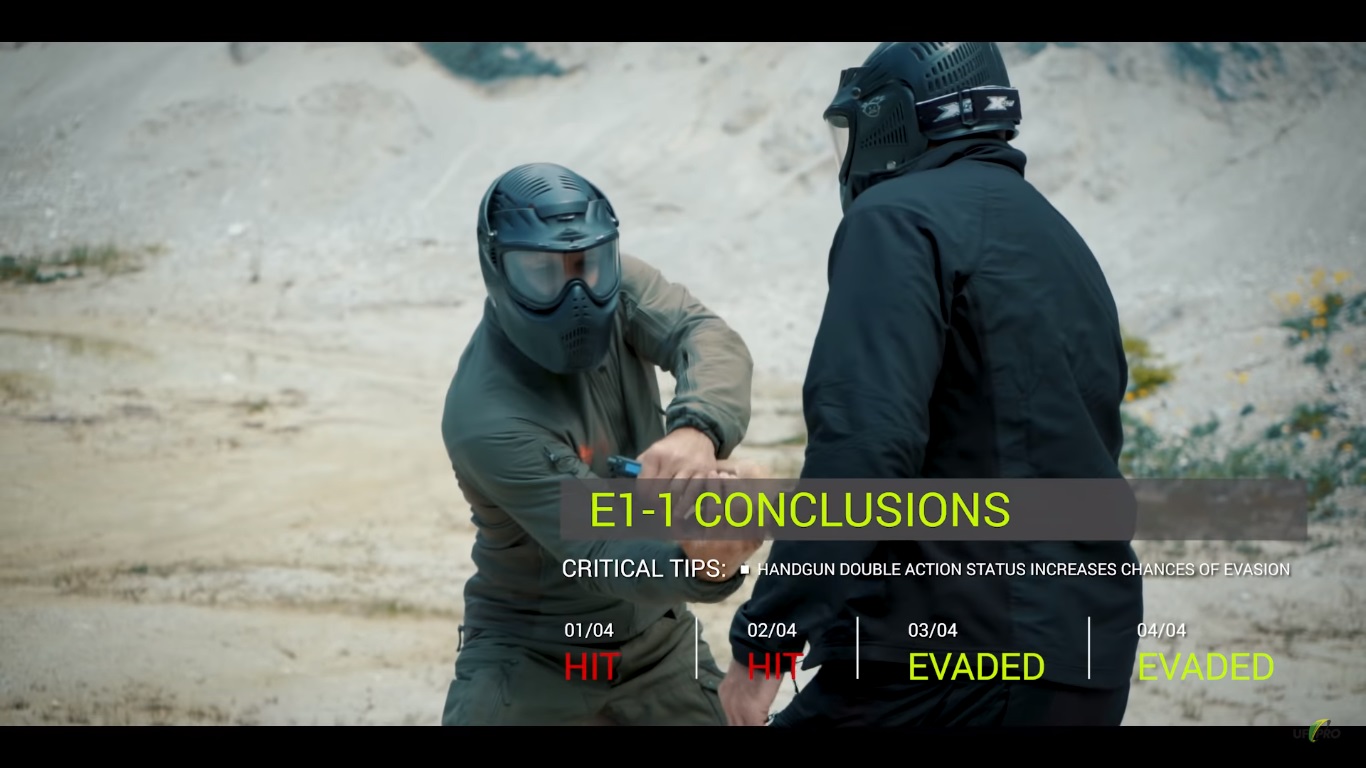 Co ciekawe, strzał bez napiętego kurka spowalnia reakcję strzelca na tyle, że możliwe może być uniknięcie postrzelenia. Gdy ten jednak jest już napięty, postrzału praktycznie uniknąć się nie da.