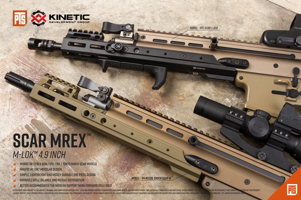 Łoża Kinetic MREX wykonane są w standardzie M-Lok, dzięki czemu przy zachowaniu ich niskiej wagi bez problemu użytkownik będzie mógł zamontować na nim wszelkiego rodzaju akcesoria, takie jak latarki, chwyty pionowe i lasery.