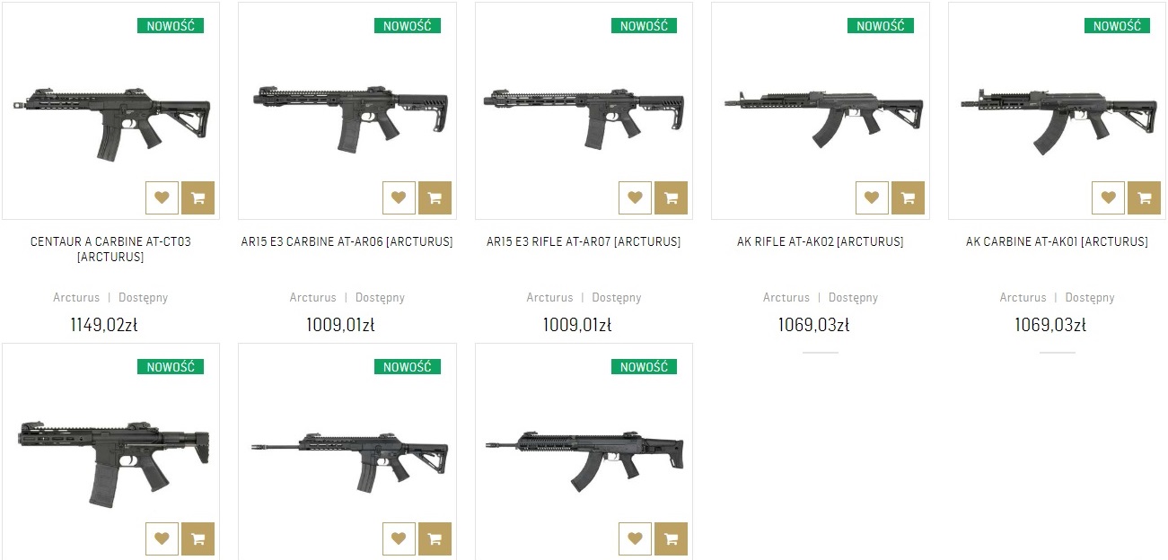 Znajdziemy wśród nich repliki bazujące na platformie AK, AR-15 i Faxon ARAK. Większość z nich, posiada warianty różniące się długością lufy.