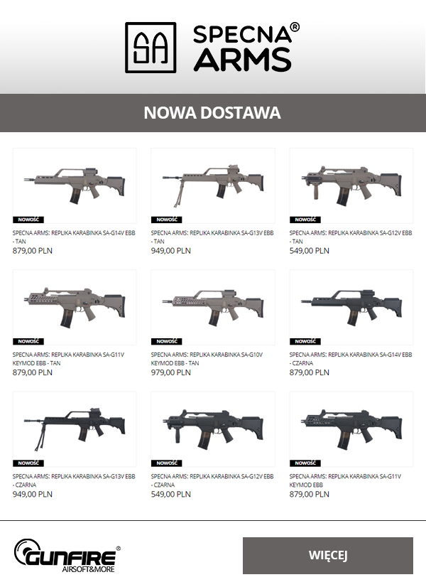 Dostawa replik z linii G-Series również dotarła do Gunfire. Znajdą się wśród nich klasyczne modele oraz nowe repliki w kolorze tan, z nowymi kolbami czy frontami KeyMod. Karabinki G-Series wyposażono w systemy Enter & Convert™, EBB oraz gearbox V3 LiPo Ready.