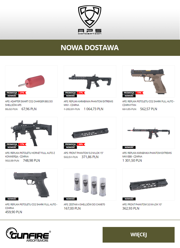 W nowej dostawie od APS odnaleźć można sporo ciekawych replik airsoftowych, w tym pistolety Shark, karabinki BOAR, Phantom Extremis, czy strzelby CAM870 oraz akcesoria takie jak popularne granaty Hakkotsu.