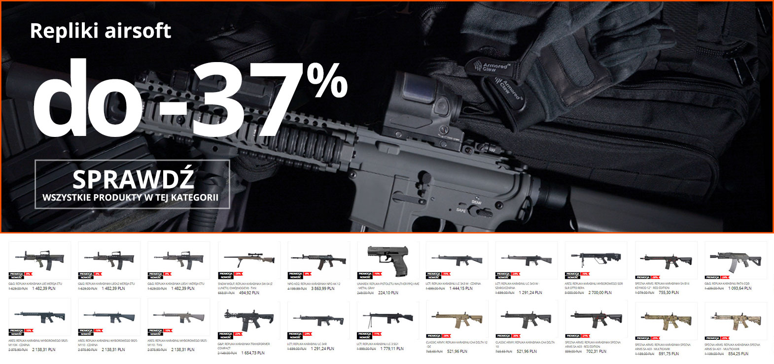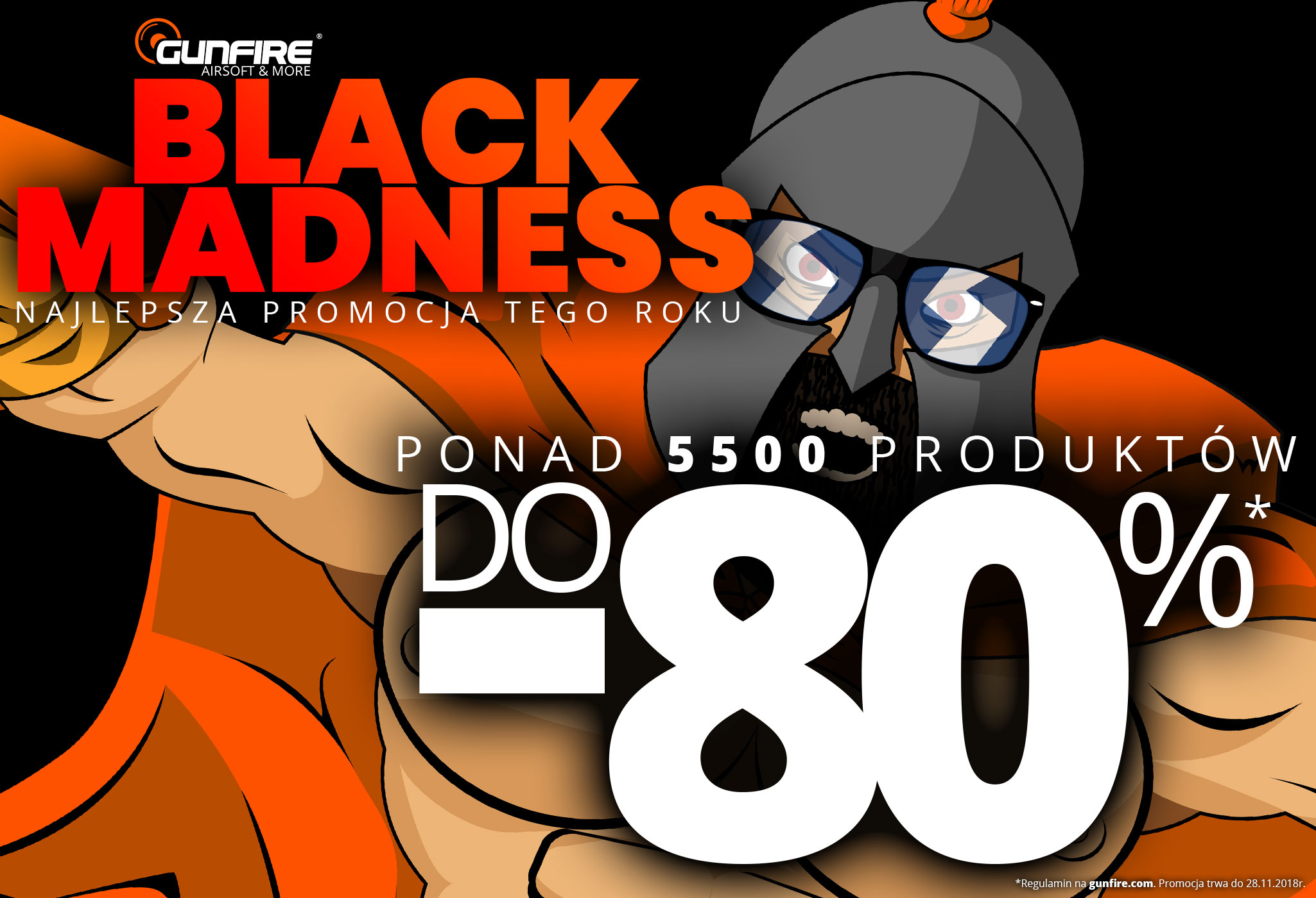 Niemożliwie niskie ceny, unikalne produkty w promocji, mówiące portfele i produkty znikające w mgnieniu oka to najczęstsze objawy Black Madness. Najgorętszej promocji tego roku która właśnie opanowała Gunfire! Nie bójcie się jednak, wiemy jak sobie z tym poradzić! Wystarczy, że odwiedzicie naszą stronę i przeszukacie ofertę po zniżkach lub kategoriach. Dzięki temu łatwo i wygodnie odkryjecie najlepsze okazje! Wśród nich znajdziecie repliki przecenione do 37%, wyposażenie taktyczne do 70% oraz części tańsze nawet do 65%. Wraz z gigantycznymi zniżkami przygotowaliśmy dla Was najbardziej popularne marki. W ofercie specjalnej znalazły się produkty od takich marek jak G&G, Tokyo Marui, Specna Arms, Valken, G&P, King Arms, Novritsch, Modify czy Cyma. Nie czekajcie do piątku i już teraz zobaczcie zniżki za które Wasze portfele będą Wam wdzięczne!