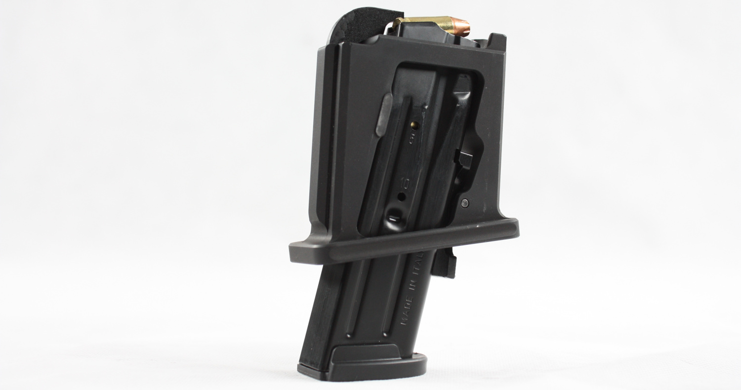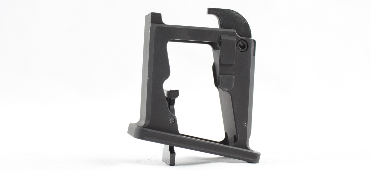 Adapter wykonany jest z anodyzowanego aluminium oraz stali, nie posiada funkcji umożliwiającej zatrzymanie zamka w tylnym położeniu po ostatnim strzale oraz jest kompatybilny tylko z magazynkami z obustronnym nacięciem dla zwalniacza magazynka.