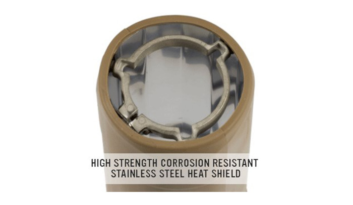 Konstrukcja oparta jest na mocowanych na tłumik pierścieniach, na które nakładana jest pokryta termoodpornym polimerem tarcza. Tarcza zwiększa powierzchnię aktywną emisji ciepła, a pierścienie mocujące zapewniają przestrzeń poprawiającą wentylację.