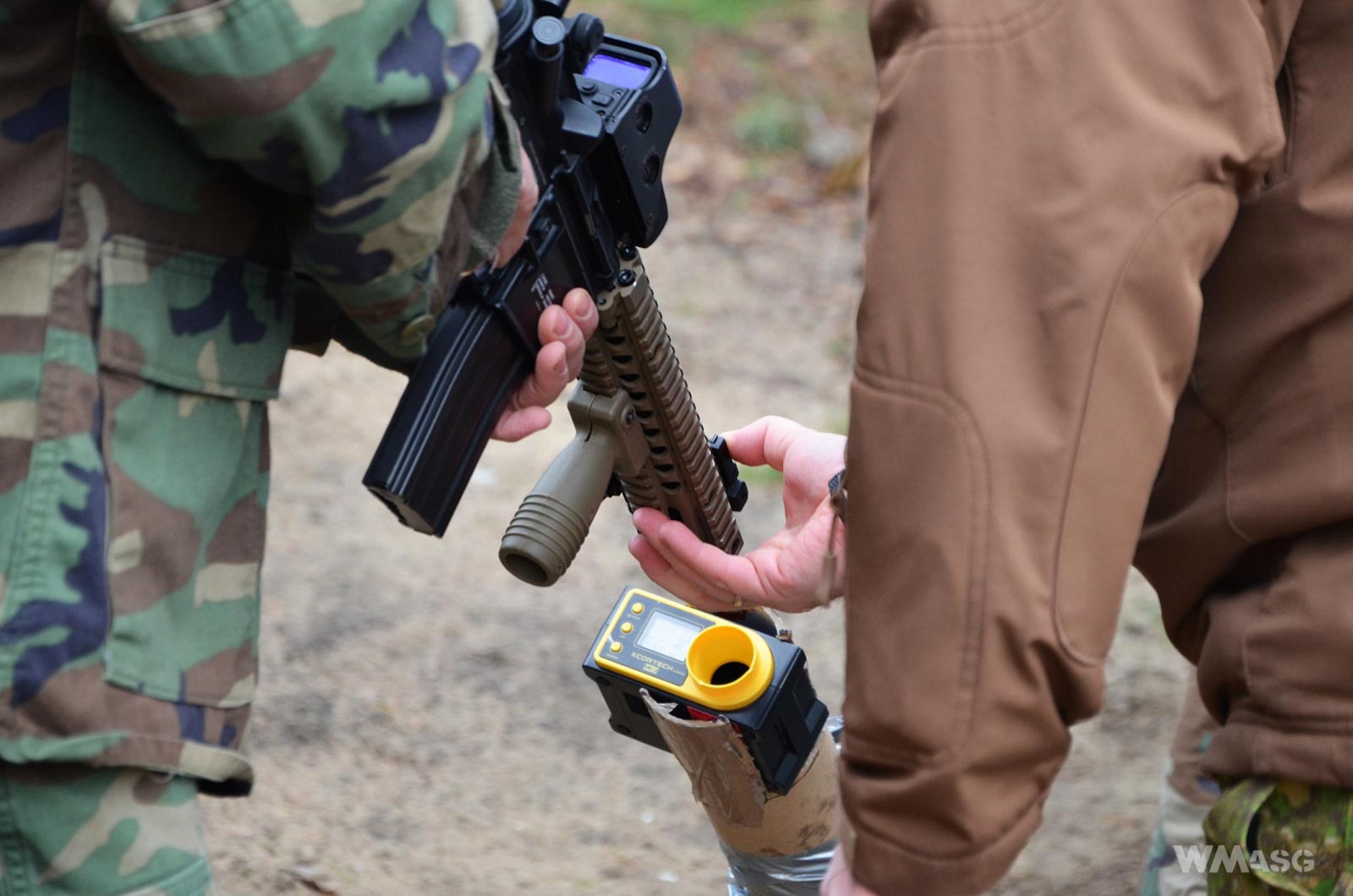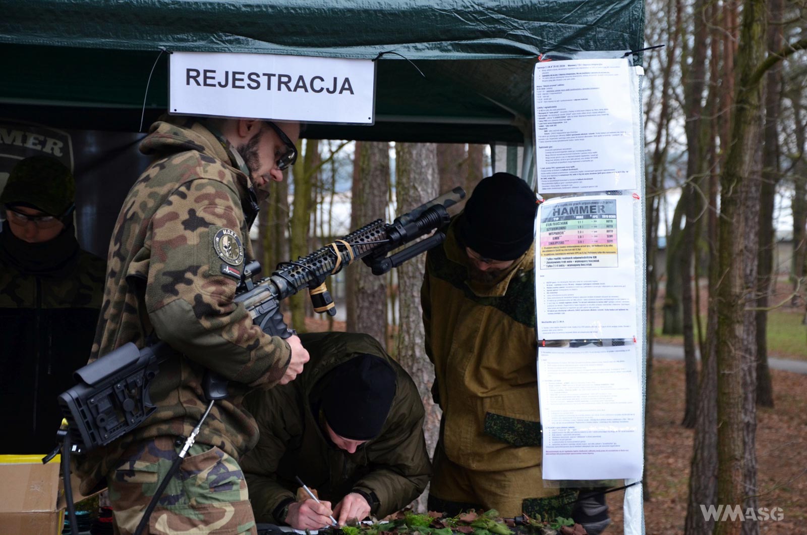 Kilkanaście minut później, po powrocie na miejsce zbiórki, życie zaczynało tam już tętnić. Proces rejestracji szedł pełną parą. Korzystając z faktu, że kolejki dopiero zaczynały narastać, niezwłocznie zarejestrowałem się i sprawdziłem repliki na chrono. Samo chronowanie przebiegało w sposób rzetelny, stanowiska były dobrze zabezpieczone. Rezultaty sprawdzano w joulach, na ciężkich kulkach, by zminimalizować wpływ joule creepa na realne osiągi replik w polu. Bez większych problemów mieściłem się w limicie. Byłoby dziwne, gdybym się nie mieścił, używając stockowej, budżetowej repliki AKS-74U (jak na rasowego rebelianta przystało).