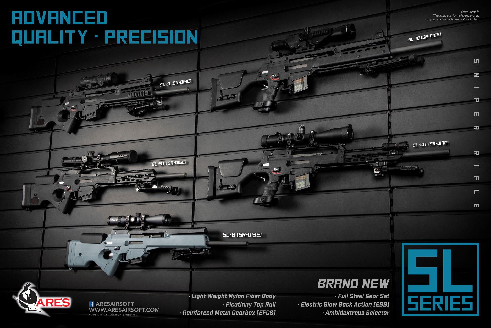 Ares Airsoft informuje, że w lipcu nowe repliki SL trafią do sklepów. Na początek będzie to najprawdopodobniej 5 replik różniących się kolbami, rodzajem i długością łoża oraz górną szyną montażową. Wspólne cechy to mechaniczny system blowback (EBB) oraz elektroniczny moduł sterujący, który u Aresa nazywa się EFCS.