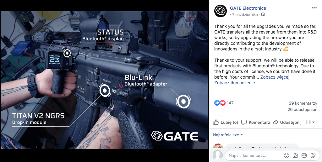 Gate Electronics oficjalnie poinformował o planach implementacji technologii Bluetooth® w swoich modułach sterujących pracą replik AEG. Produkty z Bluetooth® powinny pojawić się na rynku w pierwszym kwartale przyszłego roku. Wcześniejsze wprowadzenie tej technologii było niemożliwe ze względu na wysokie koszty licencji.